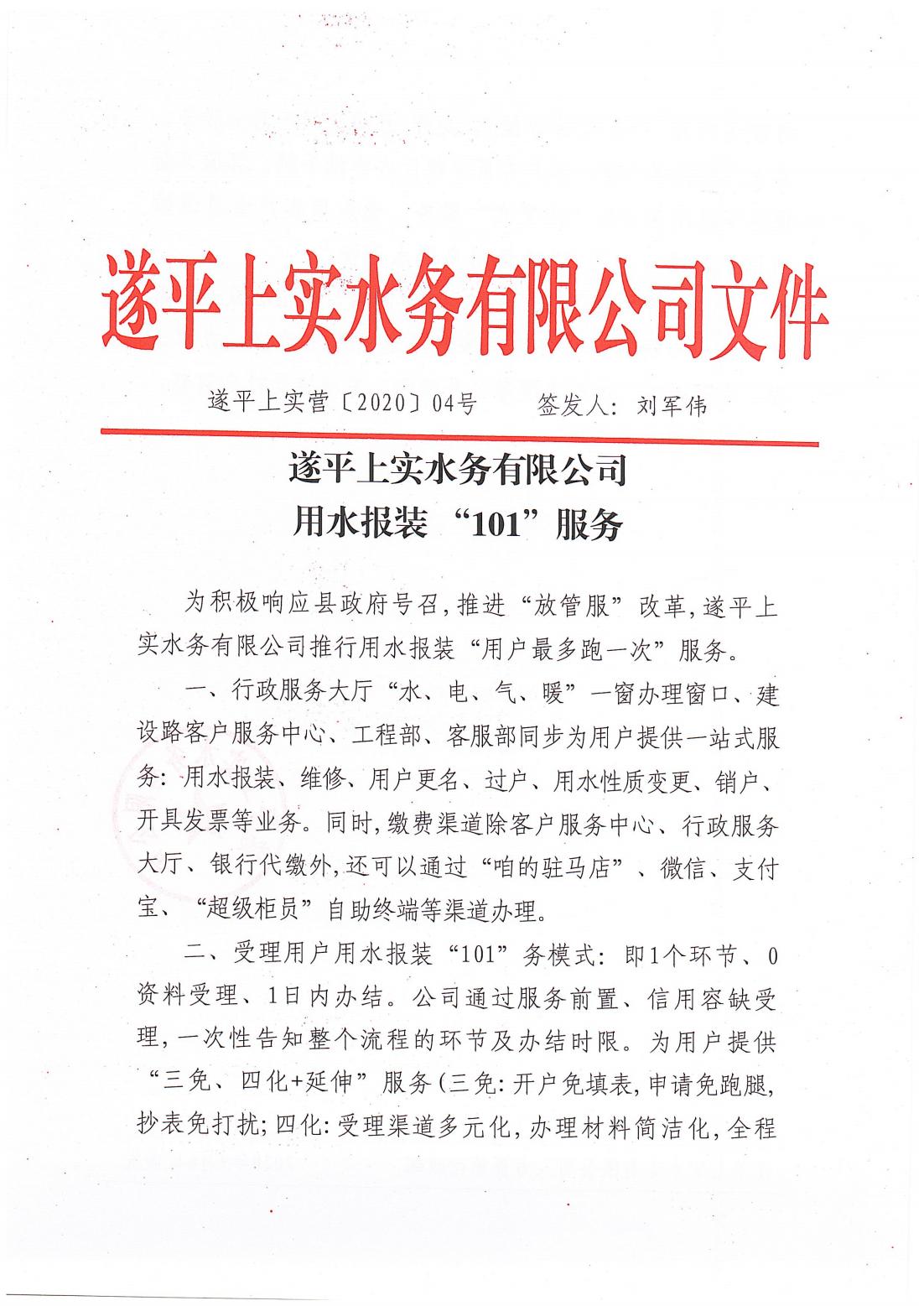 营(2020)04用水报装“101”服务