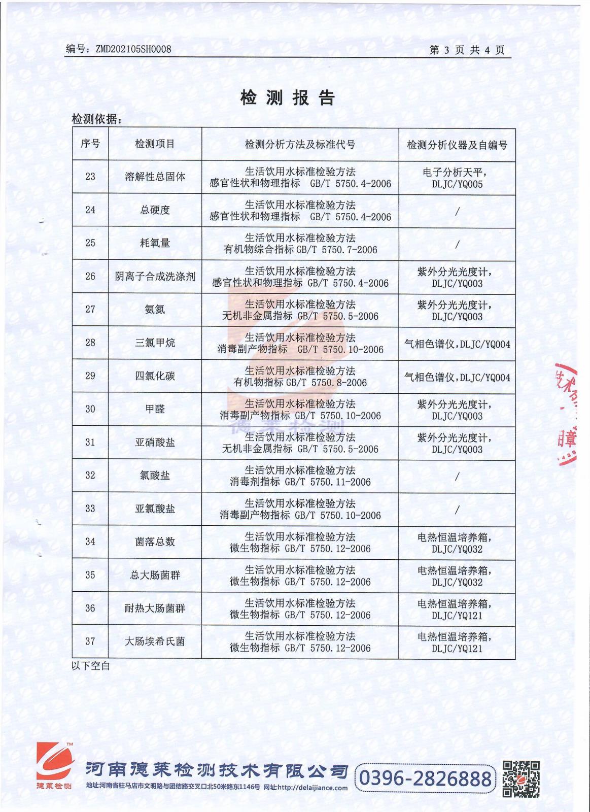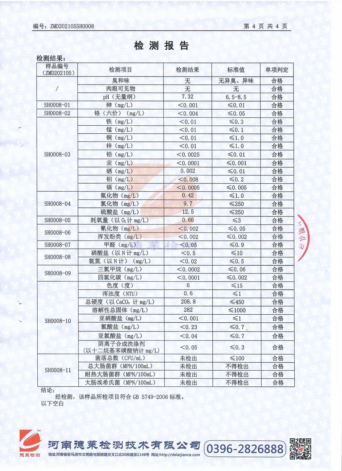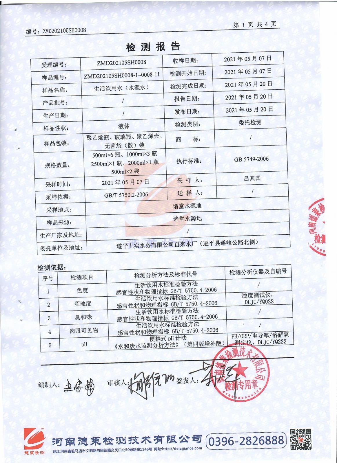 遂平上实水务有限公司南区水厂5月份水质检测报告
