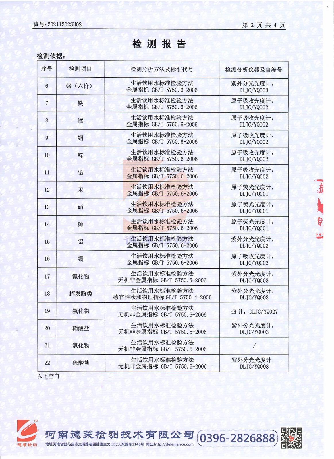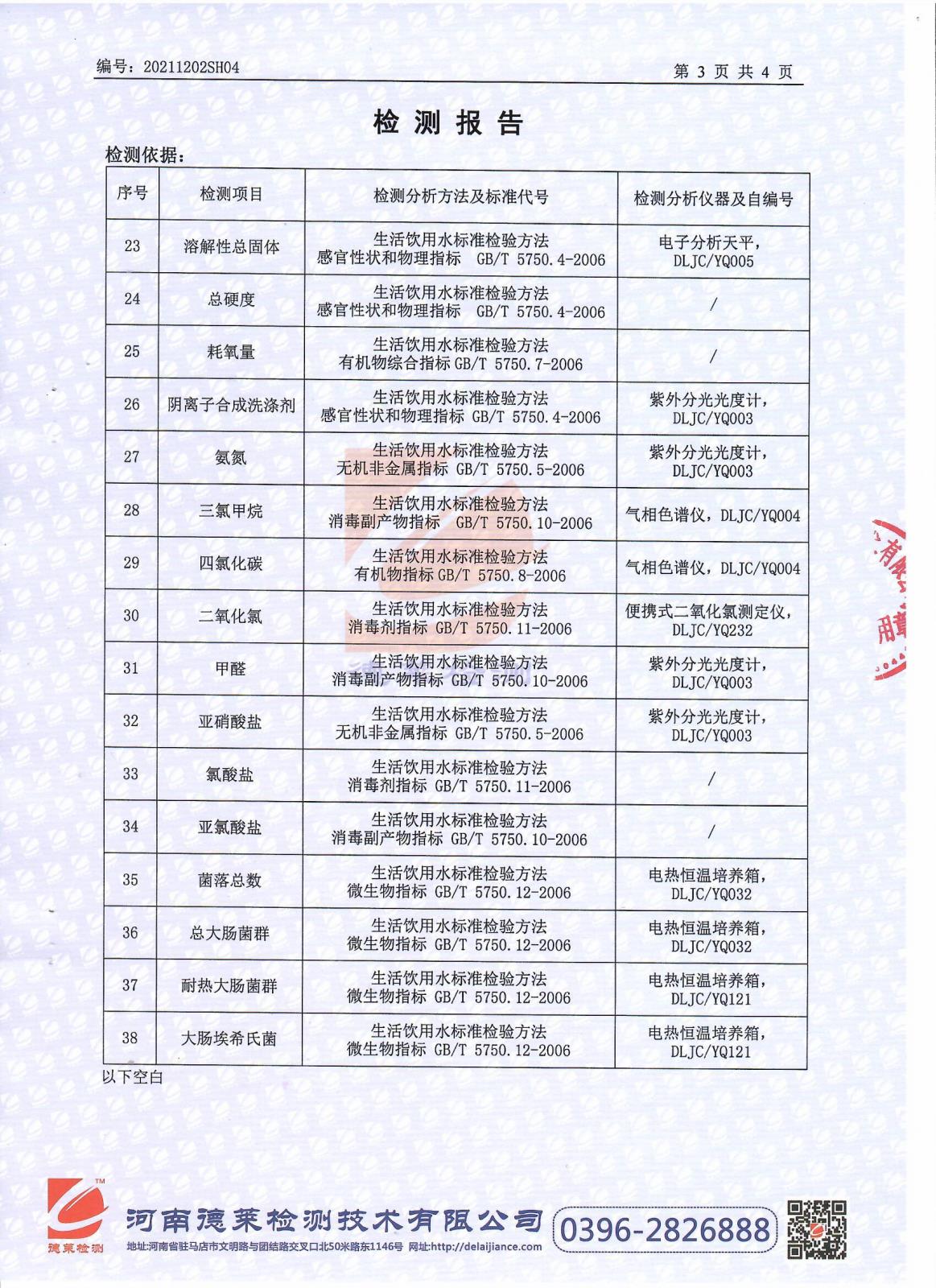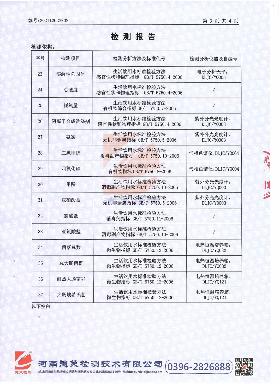 遂平上实水务有限公司第一水厂12月份水质检测报告