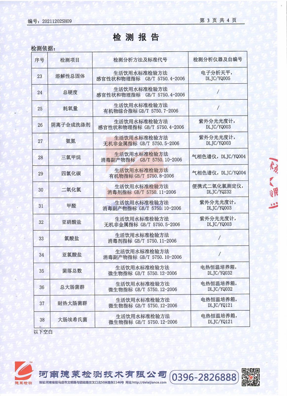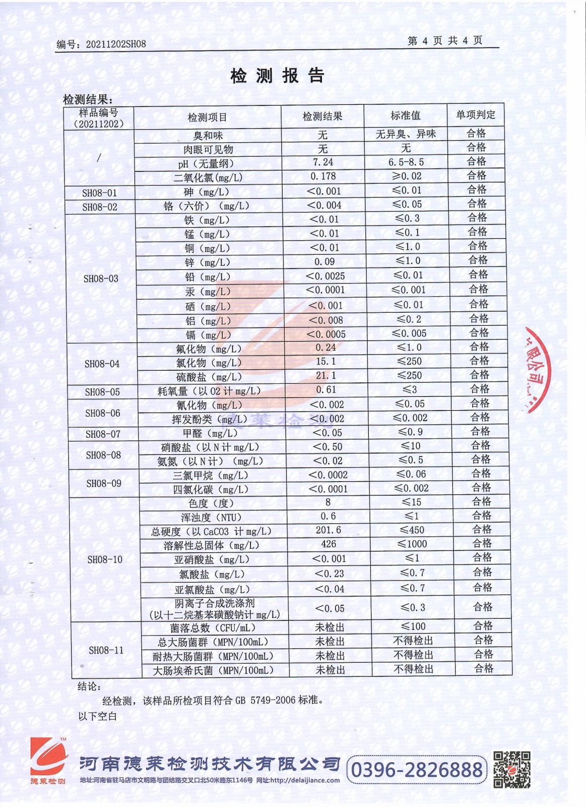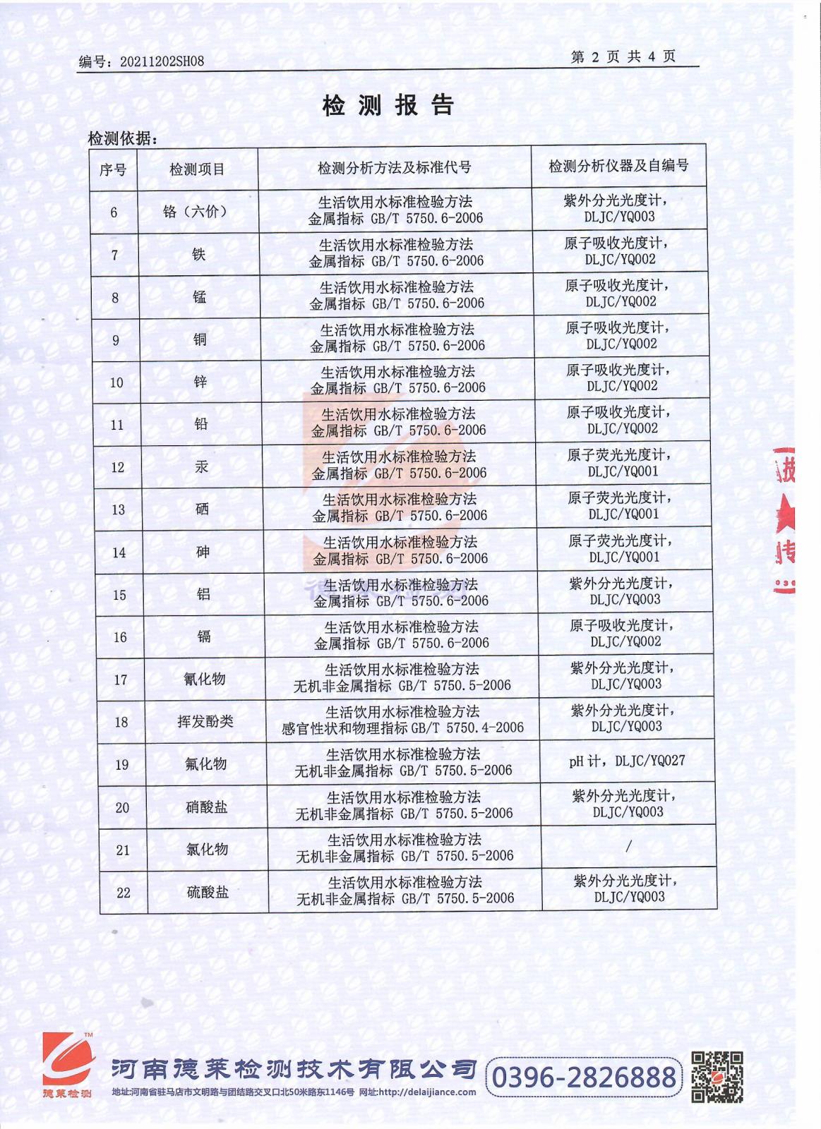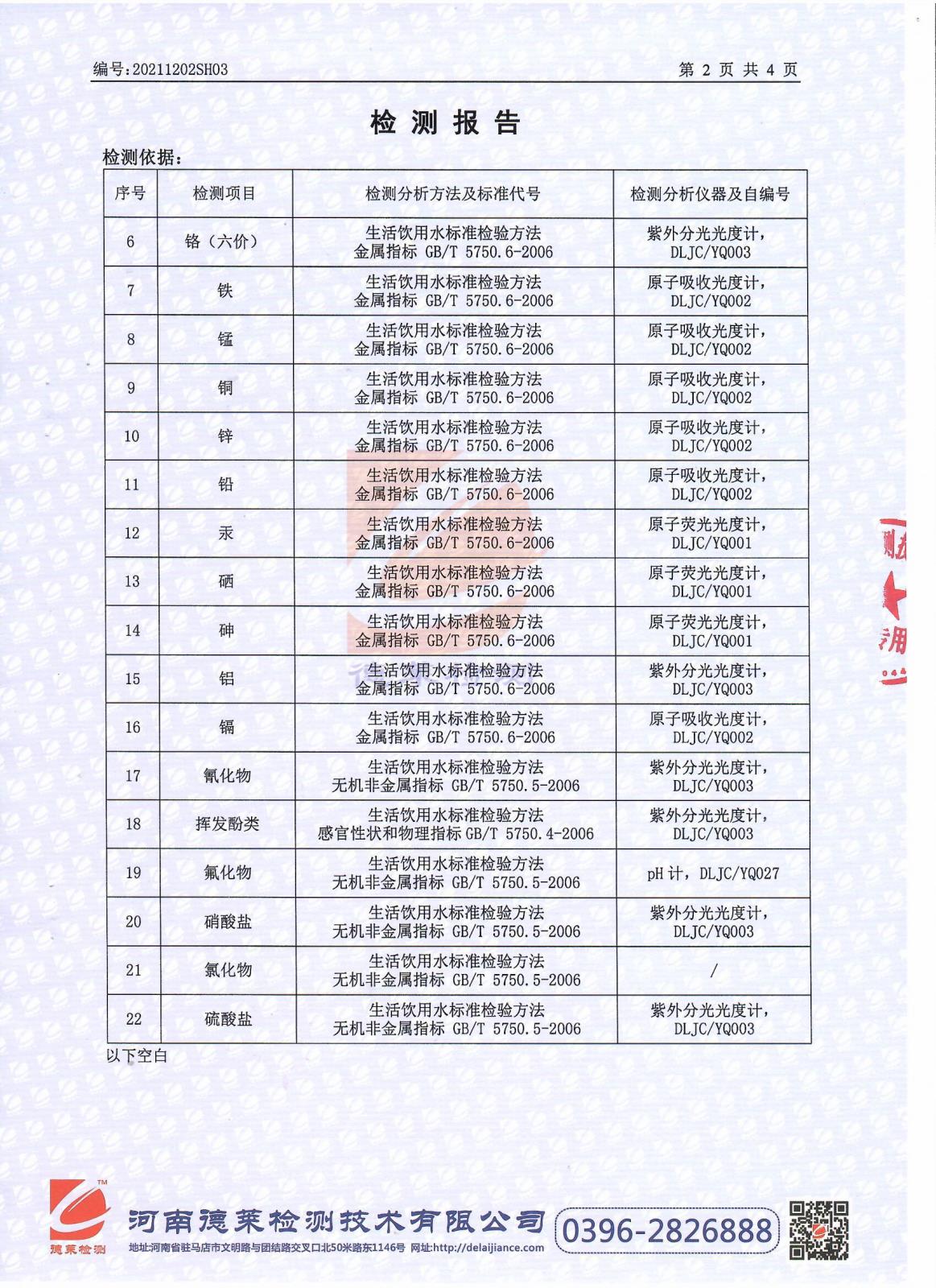 遂平上实水务有限公司第二水厂12月份水质检测报告
