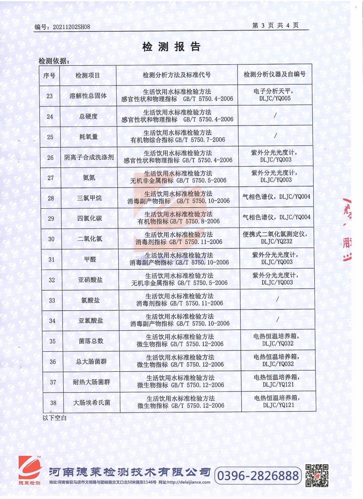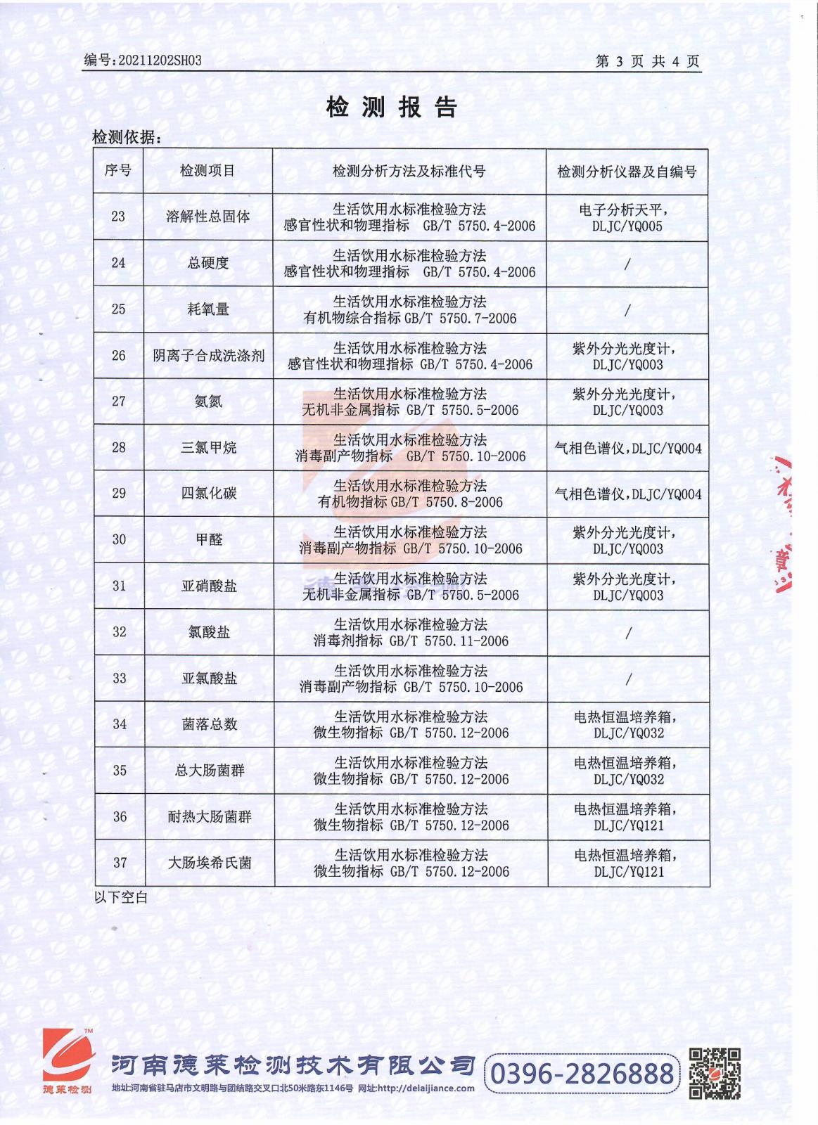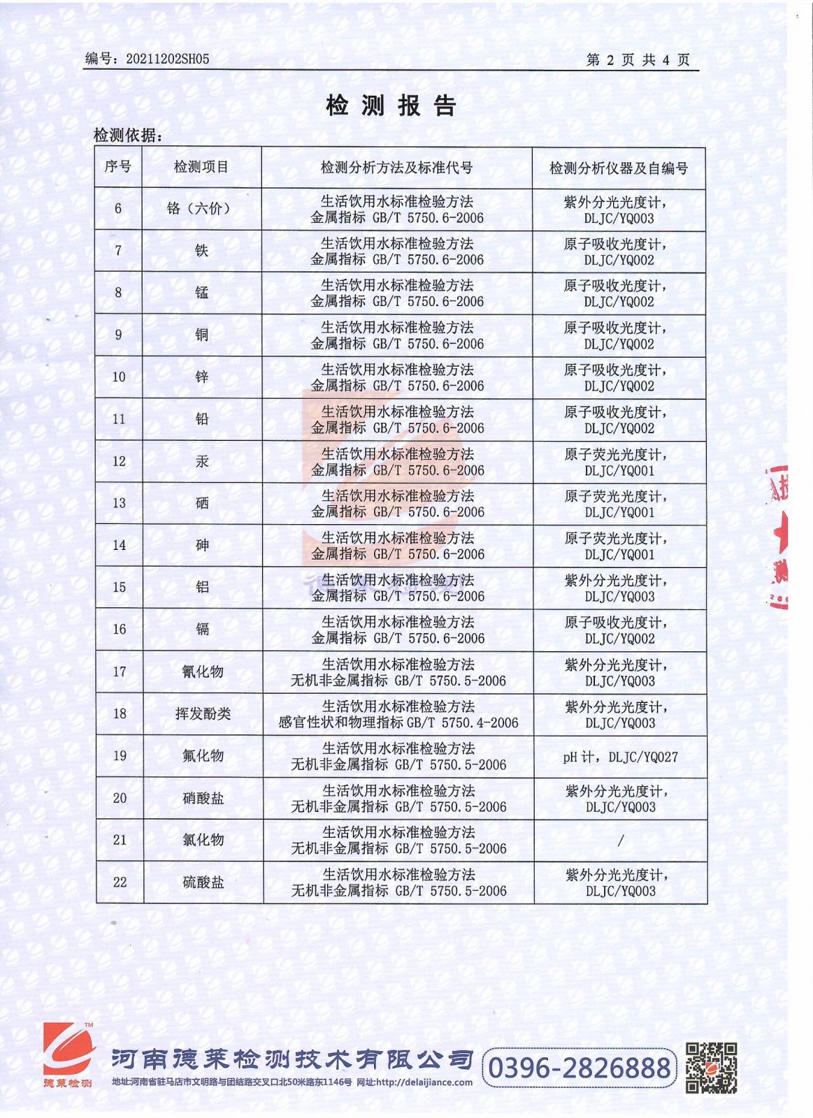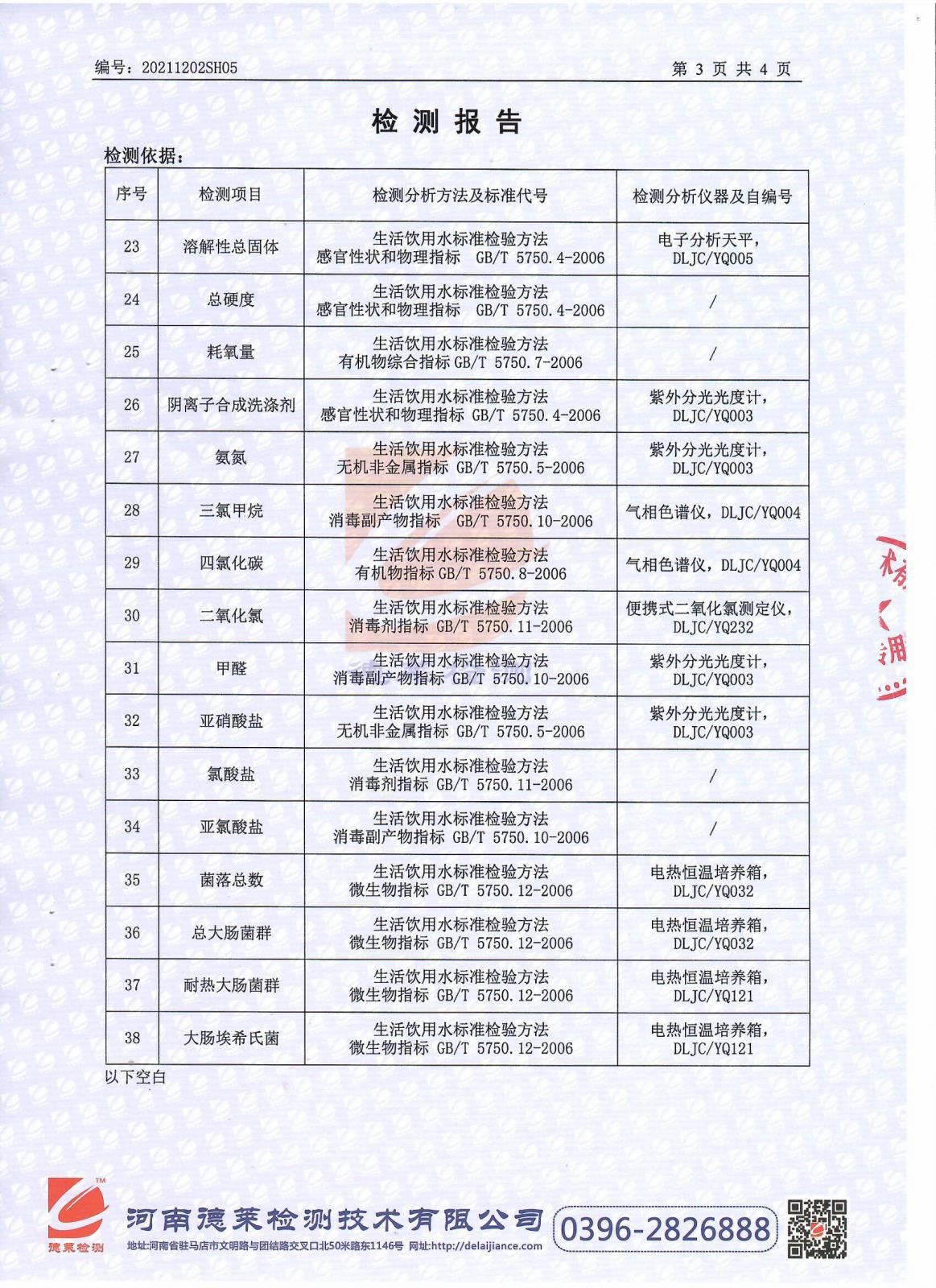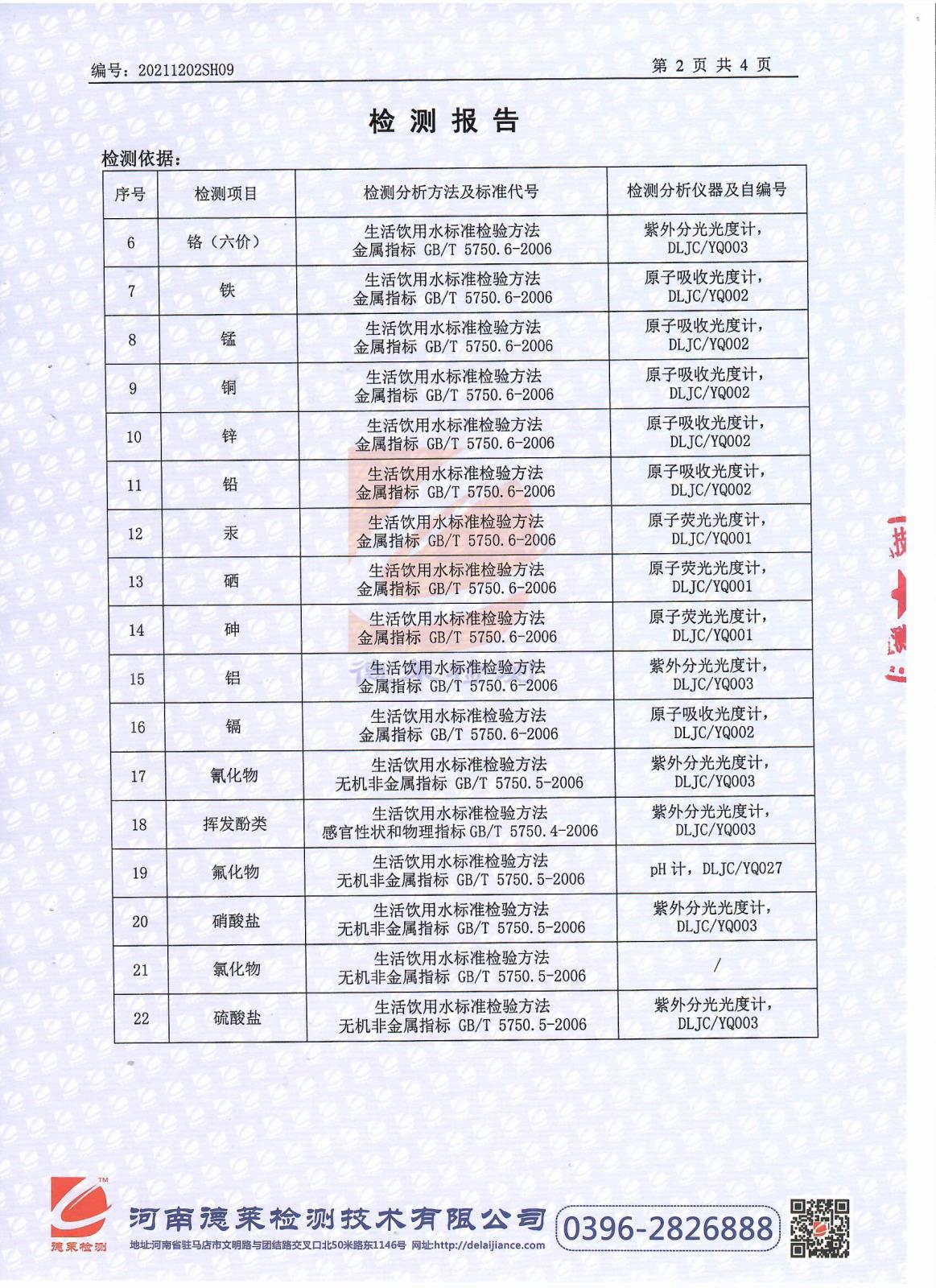 遂平上实水务有限公司第二水厂12月份水质检测报告