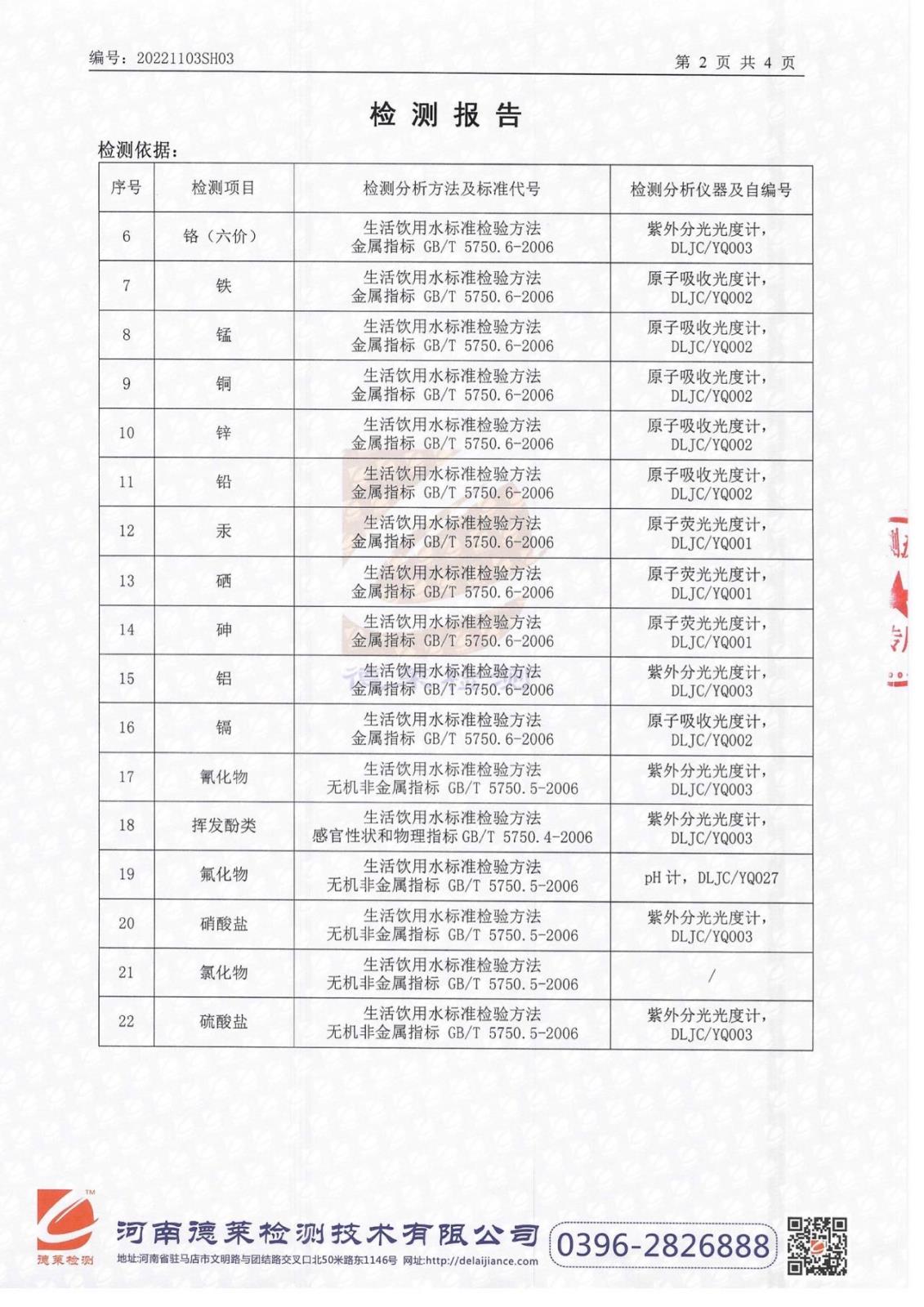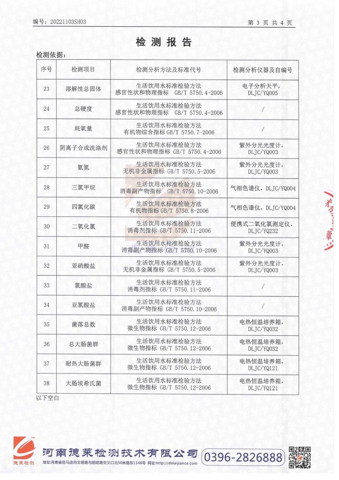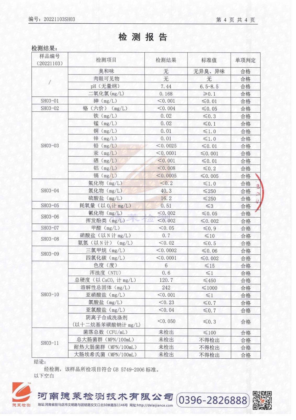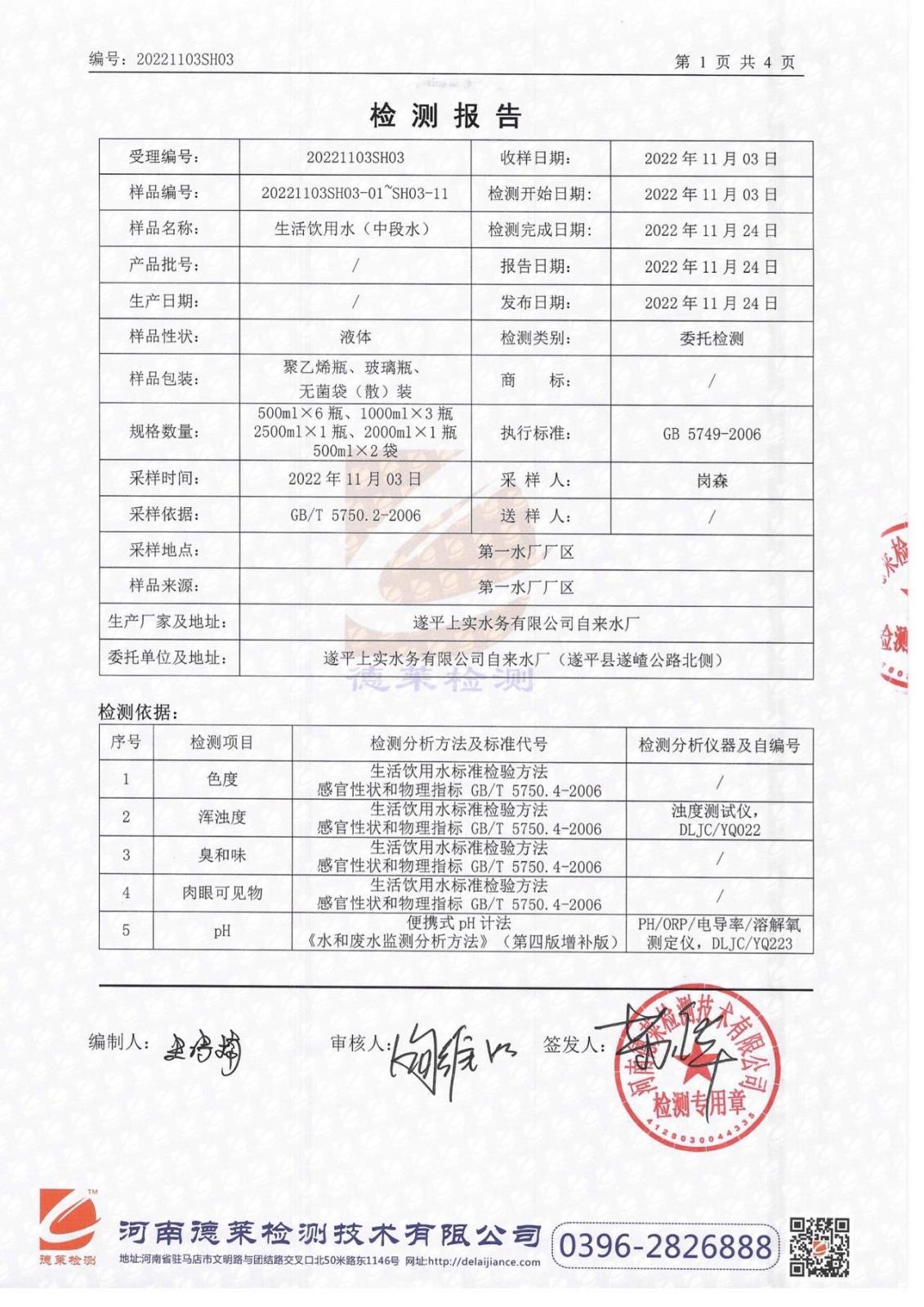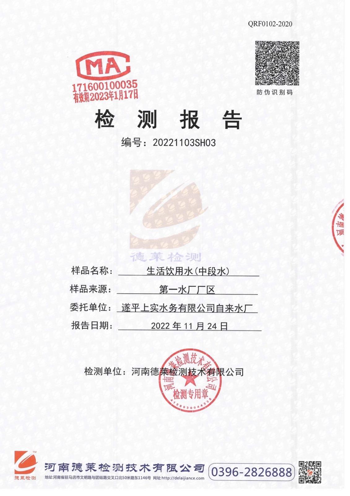 遂平上实水务有限公司第一水厂11月份水质检测报告
