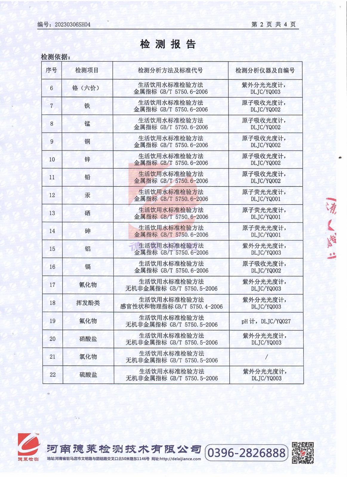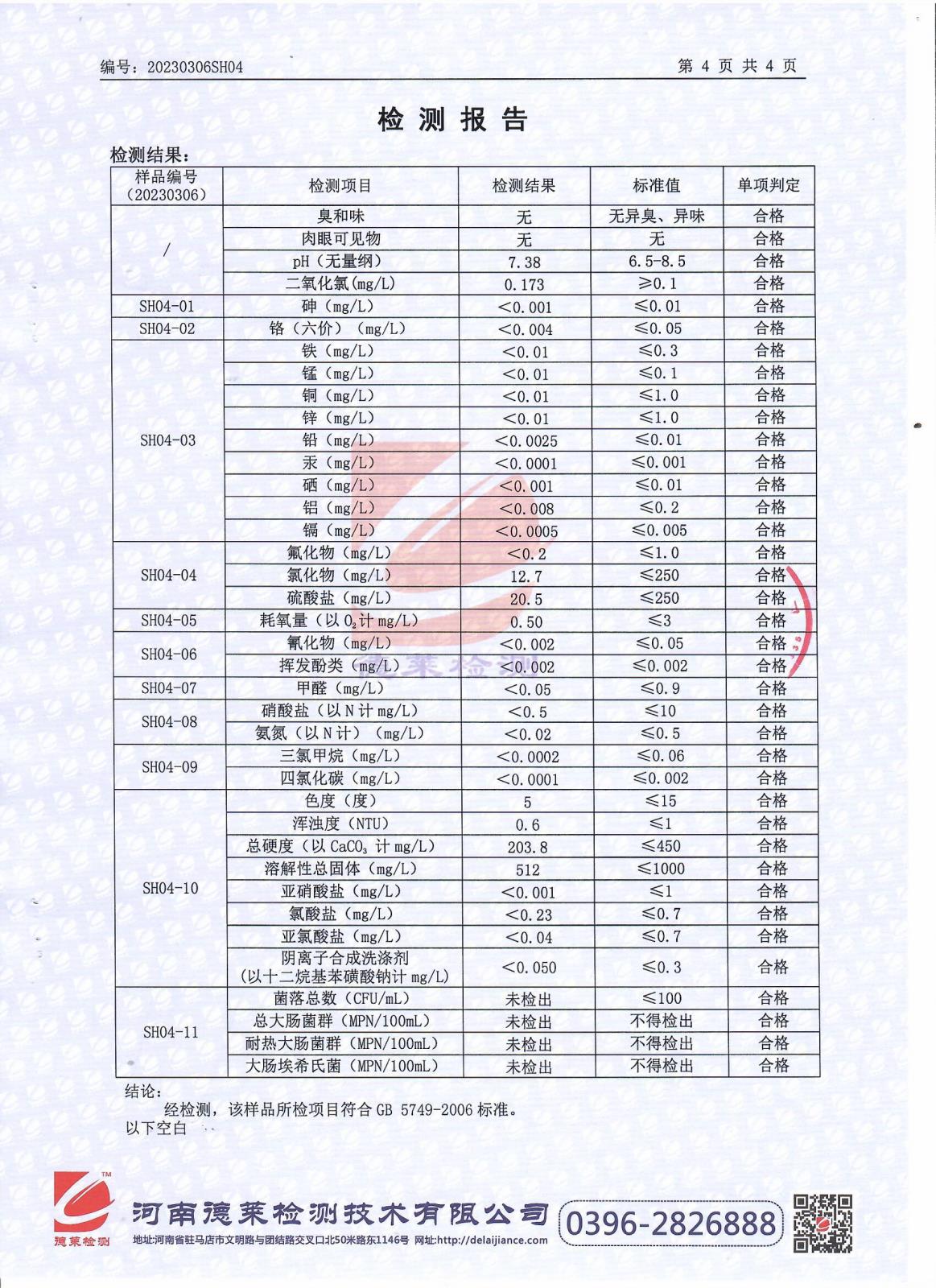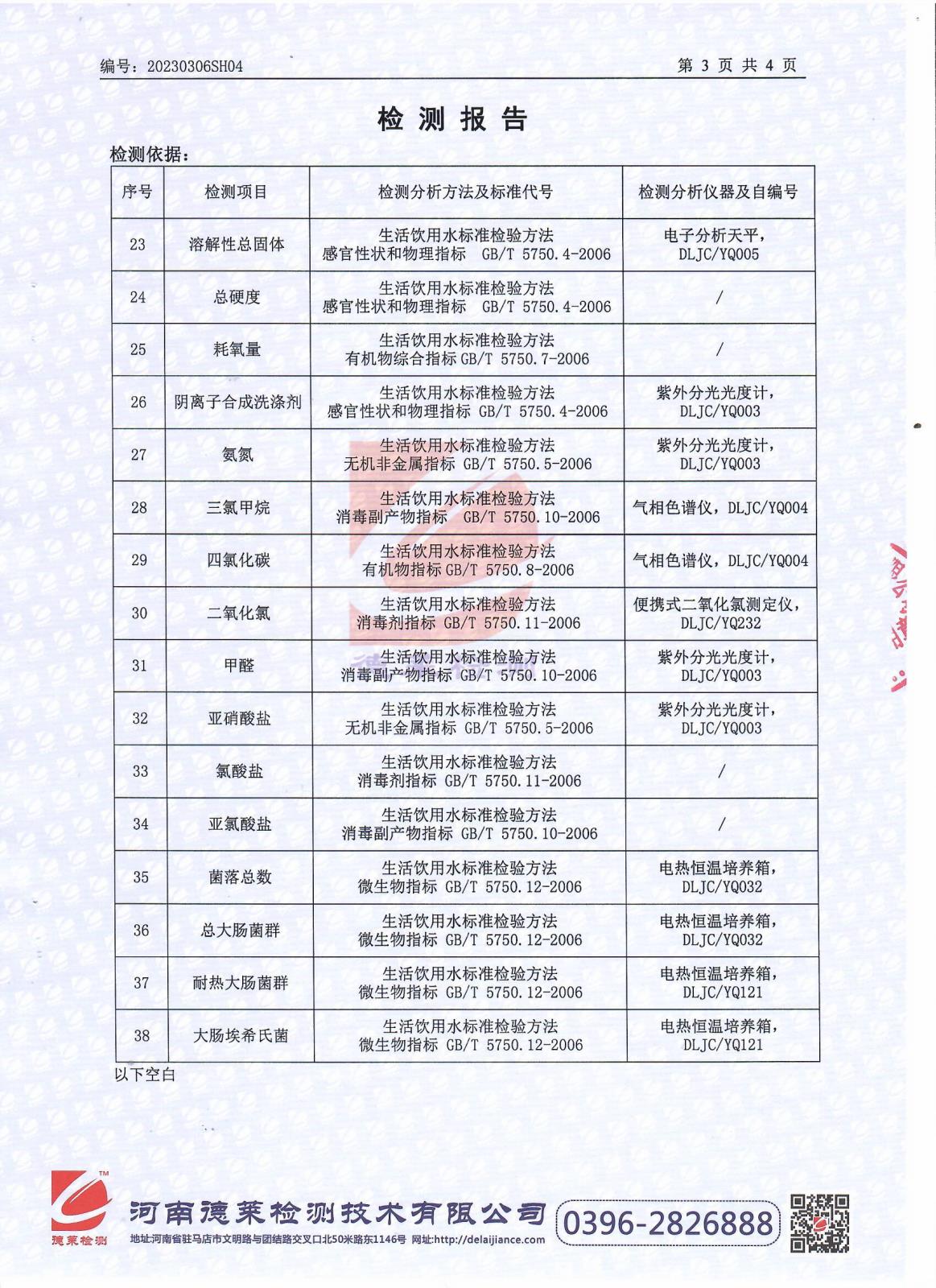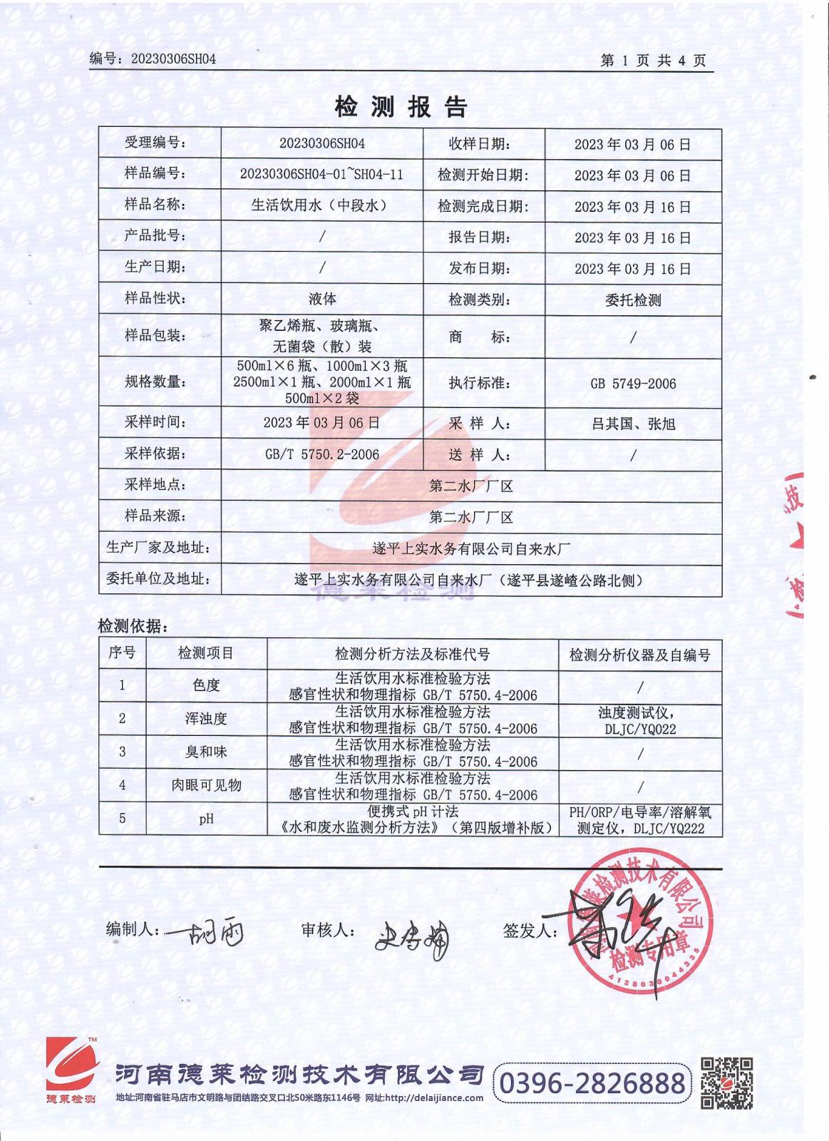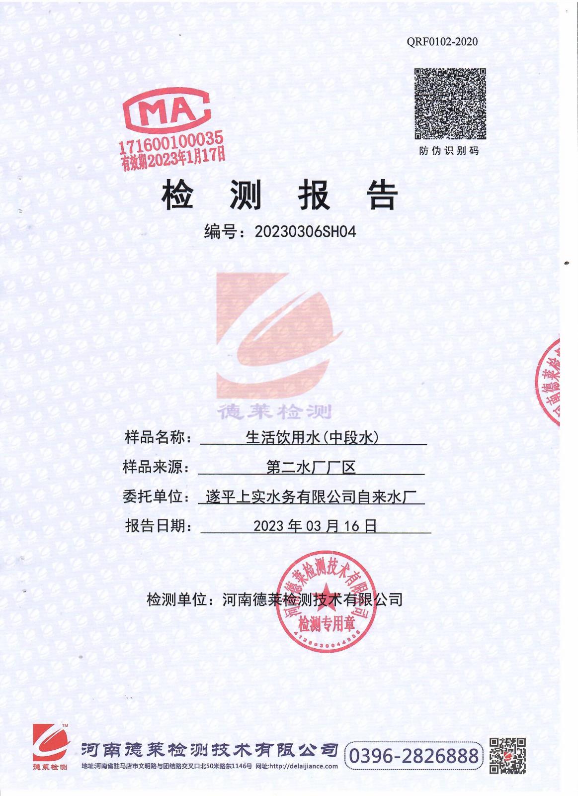 遂平上实水务有限公司2023年二水厂3月份水质检测报告