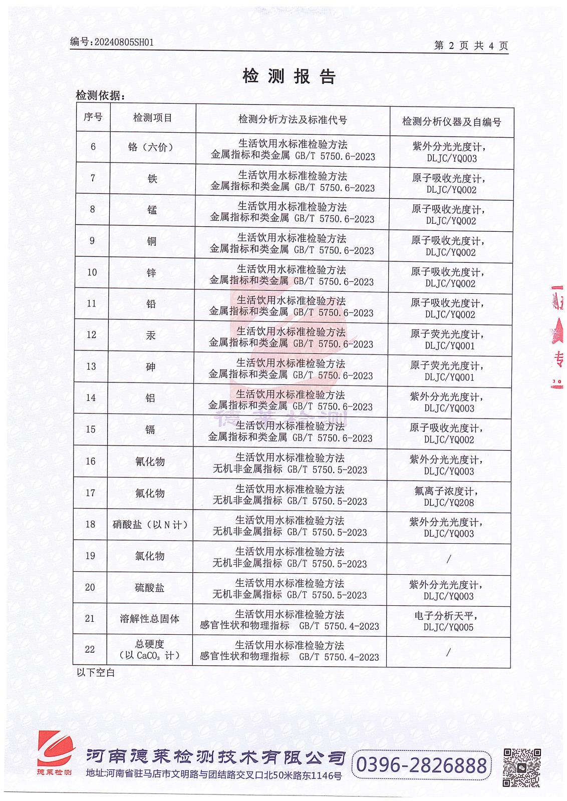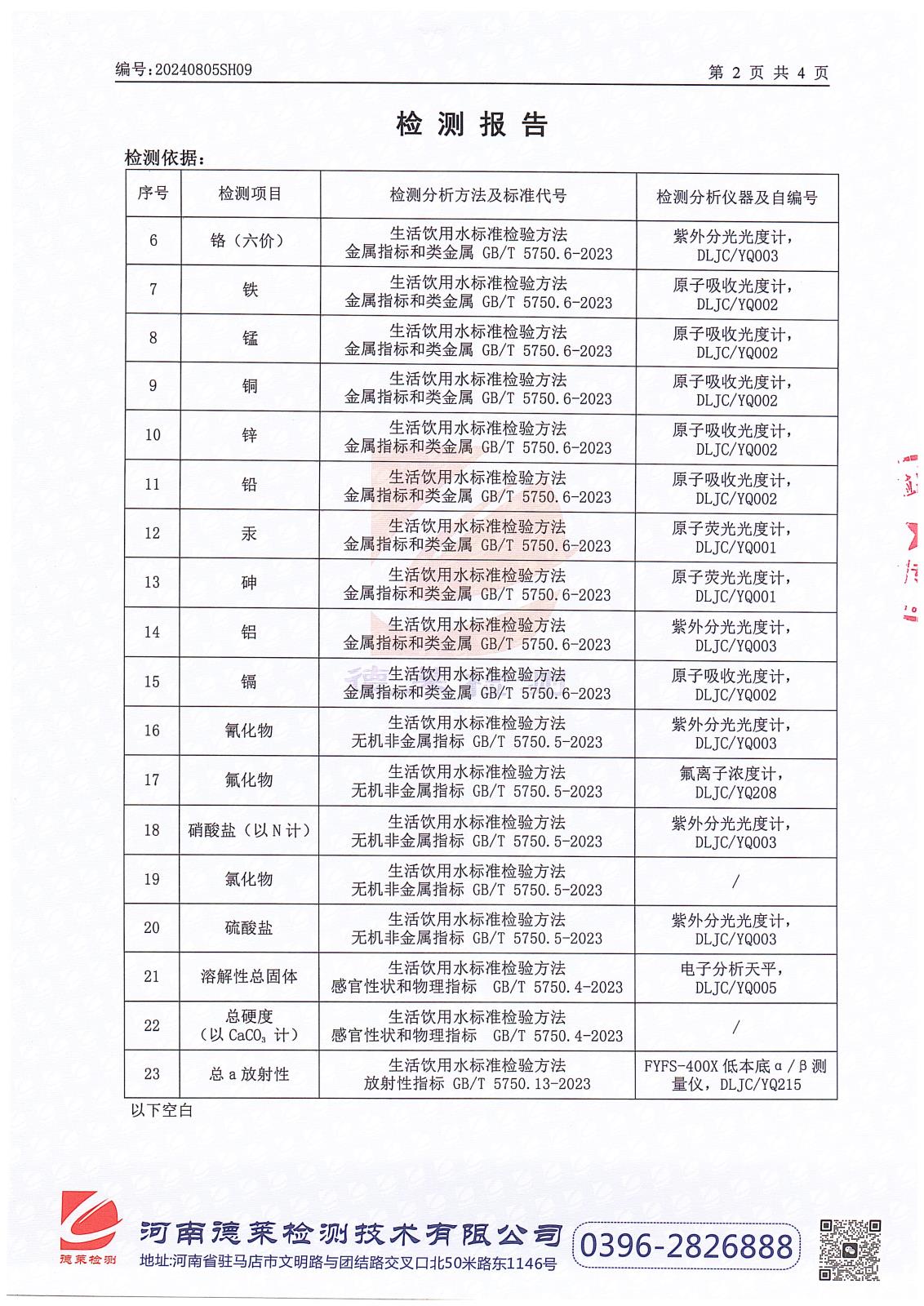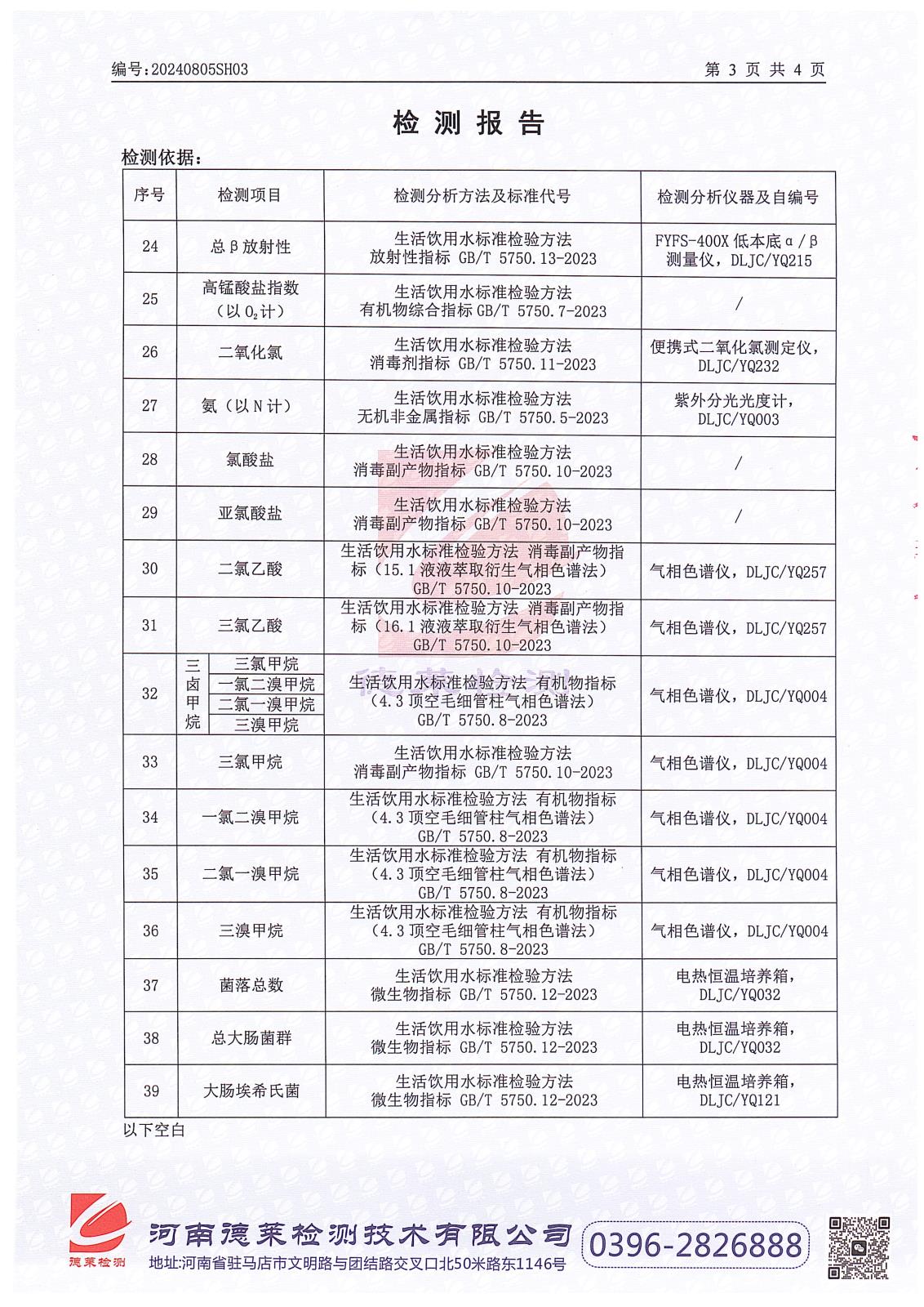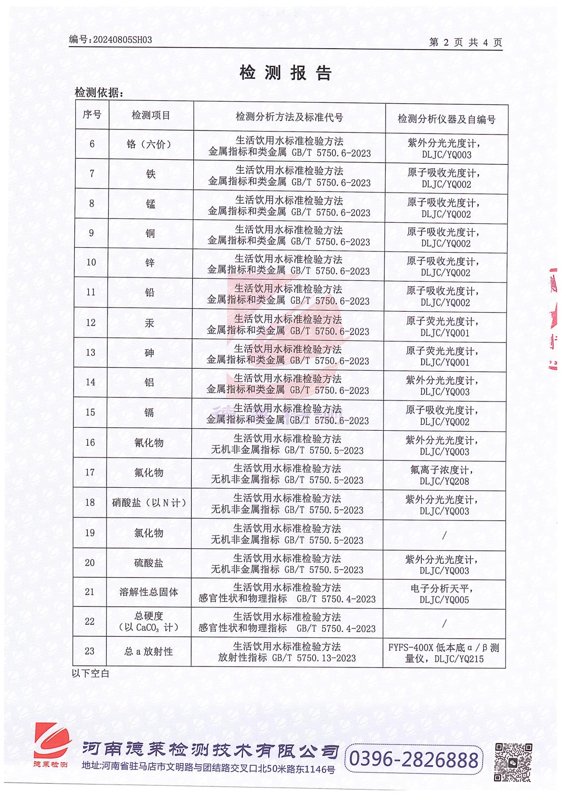 遂平上实水务有限公司2024年一水厂8月份水质检测报告