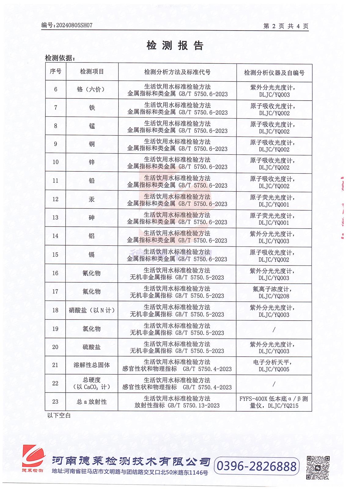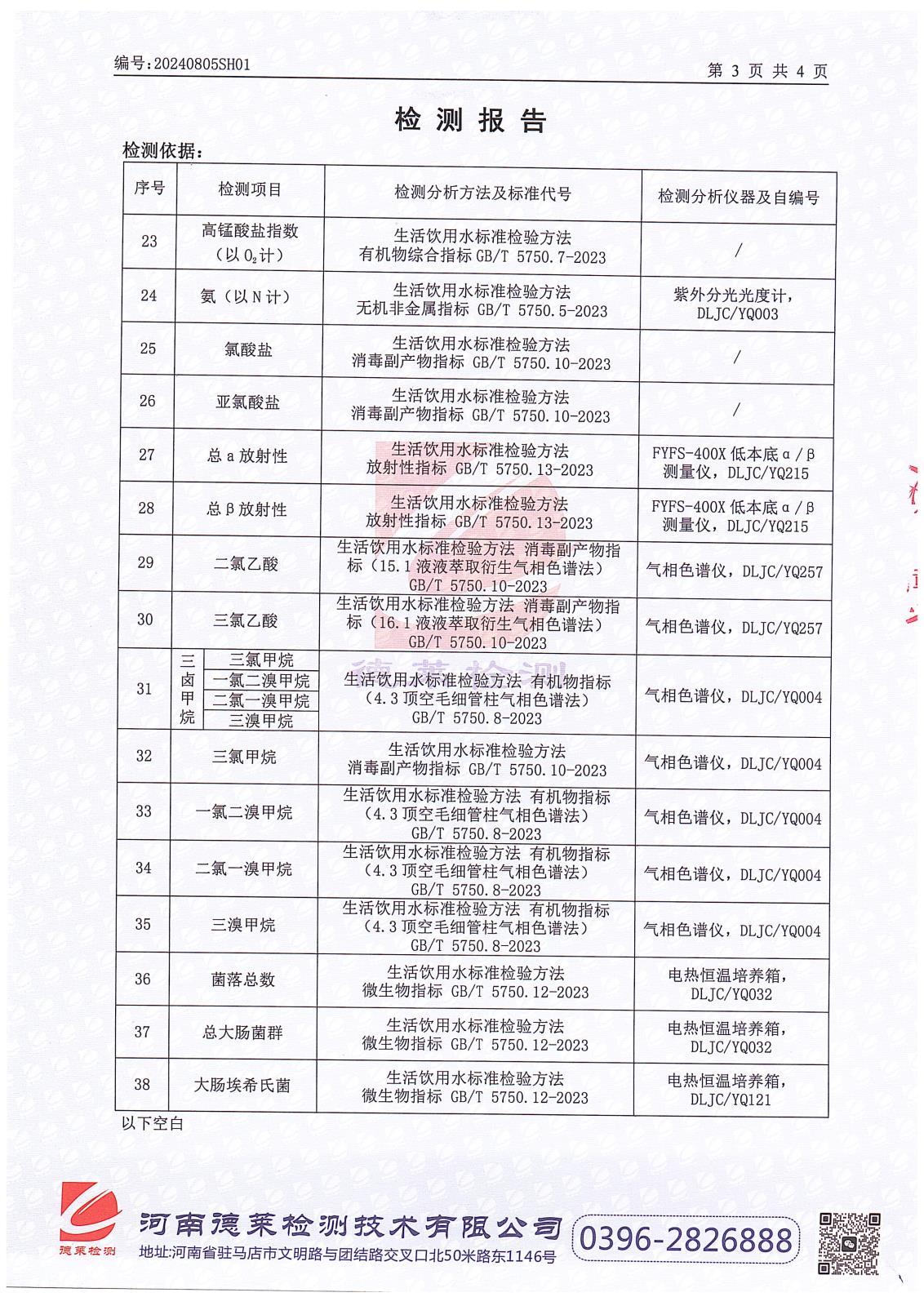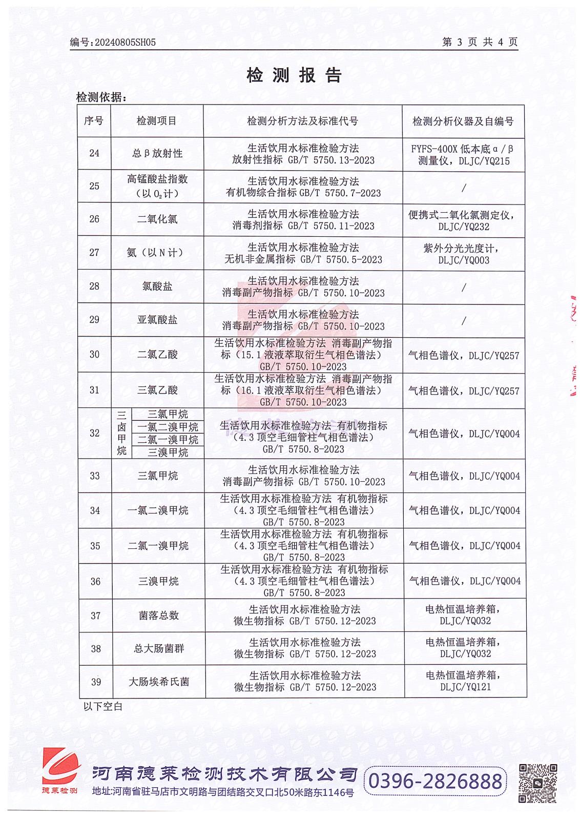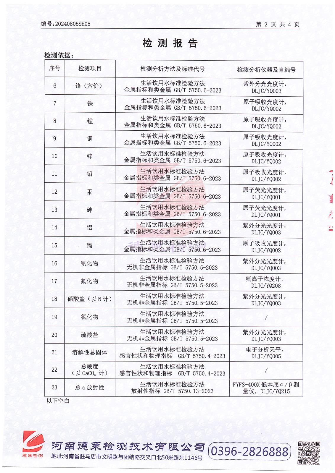 遂平上实水务有限公司2024年一水厂8月份水质检测报告