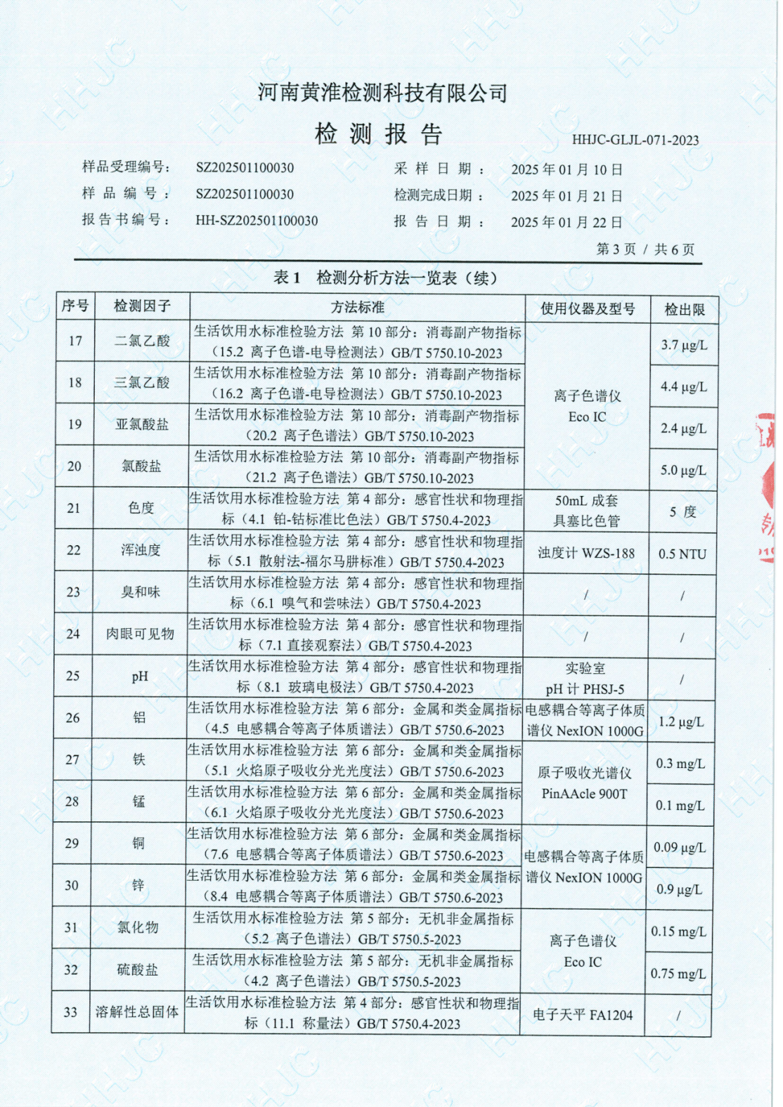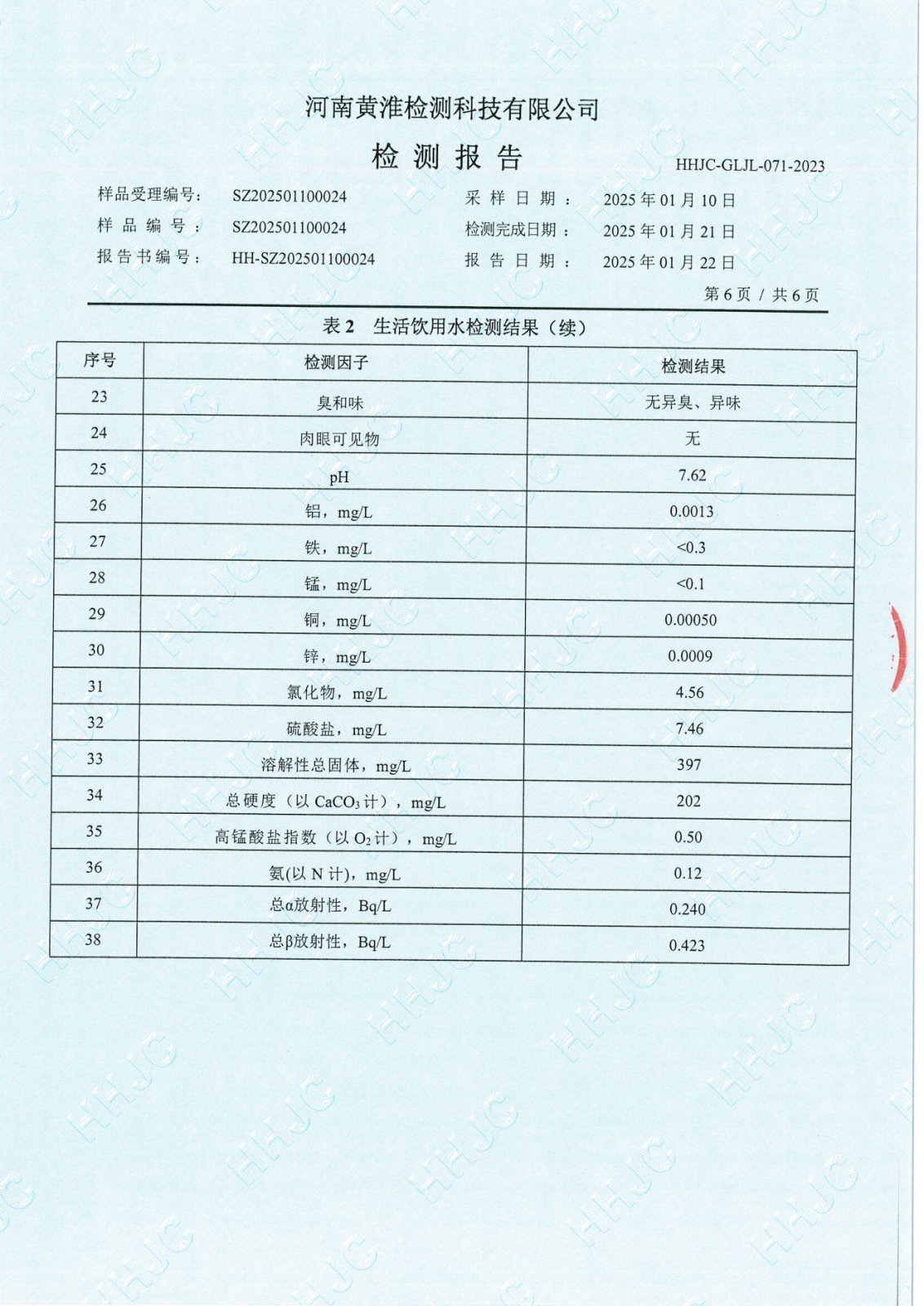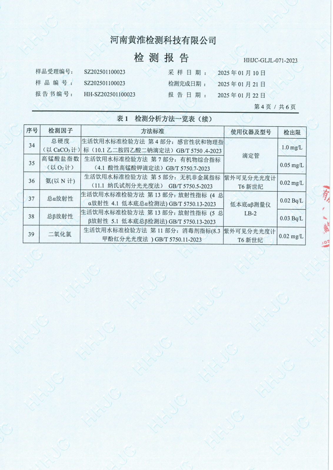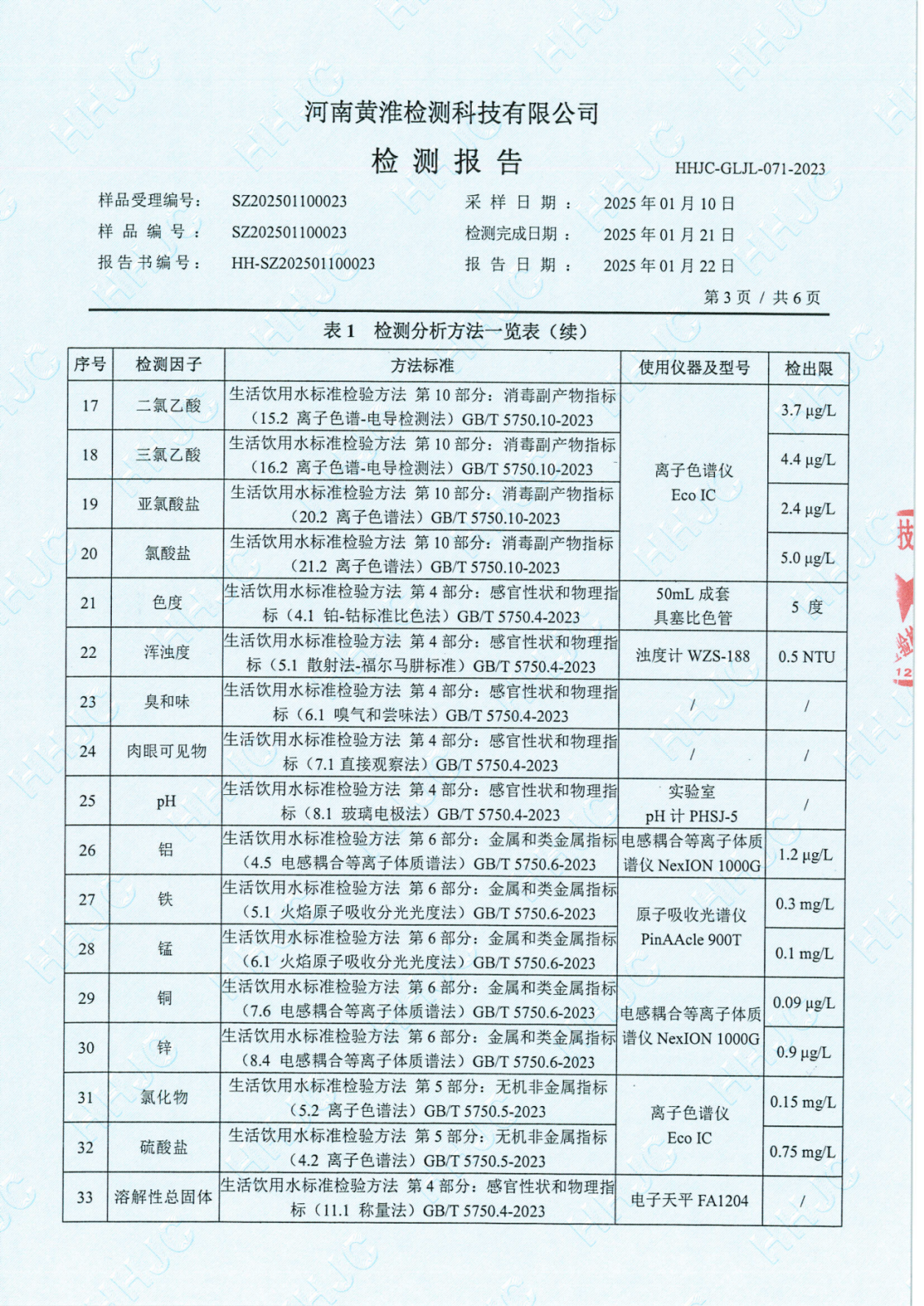 遂平上实水务有限公司2025年一水厂1月份水质检测报告