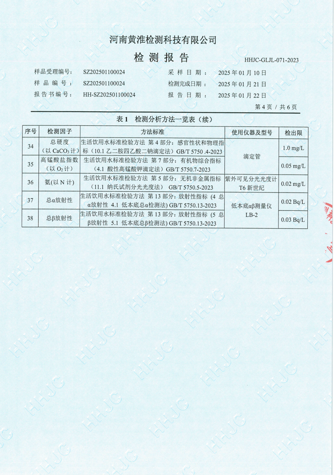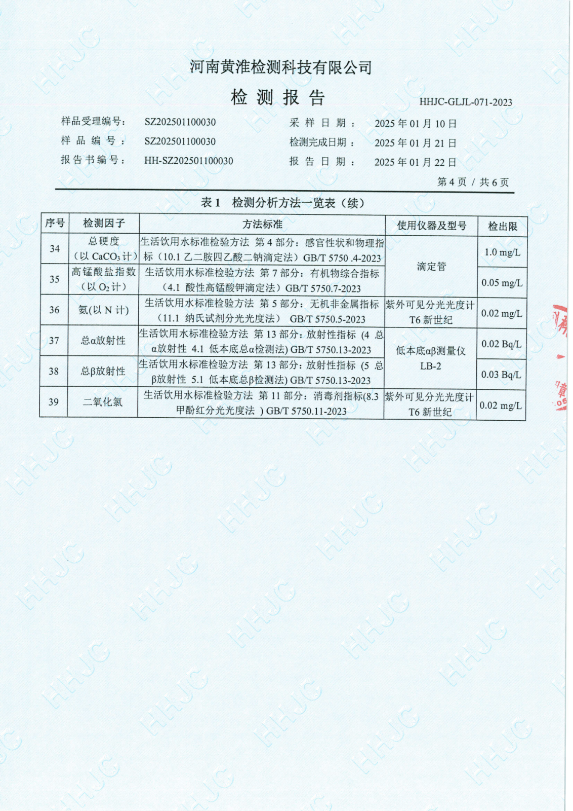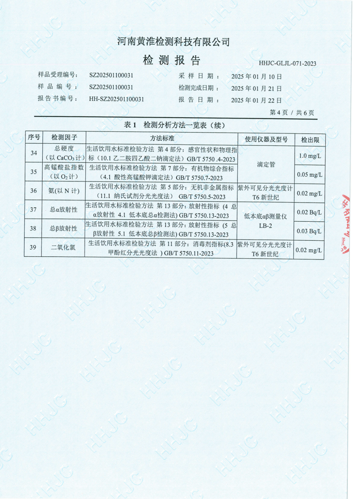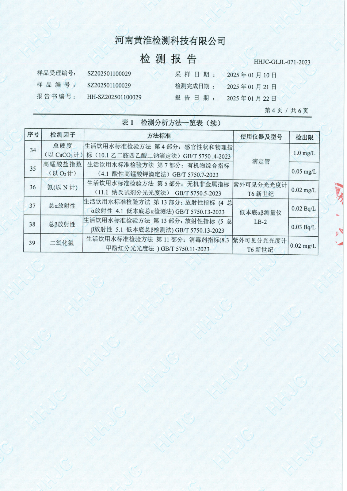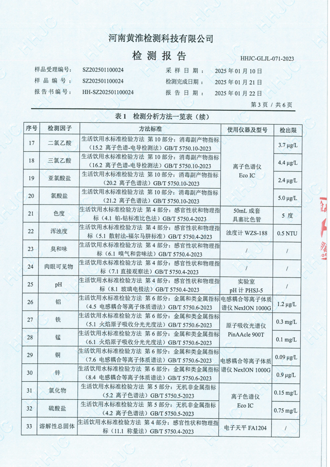 遂平上实水务有限公司2025年一水厂1月份水质检测报告