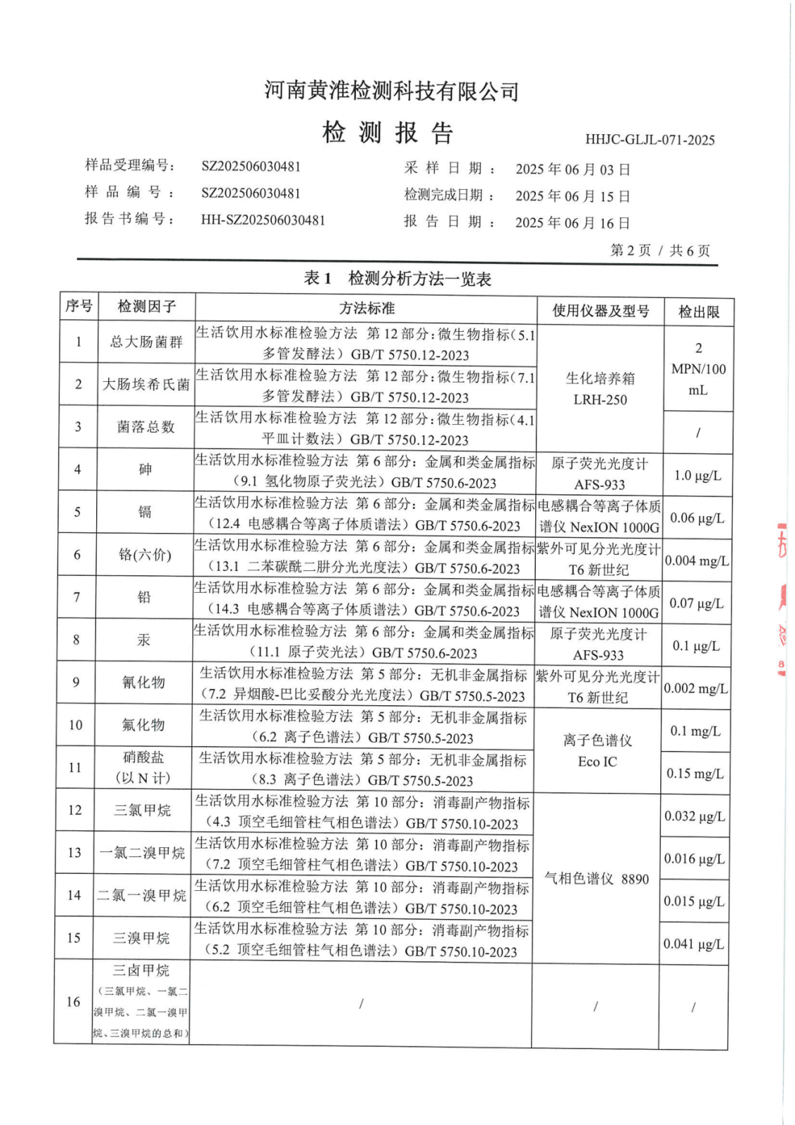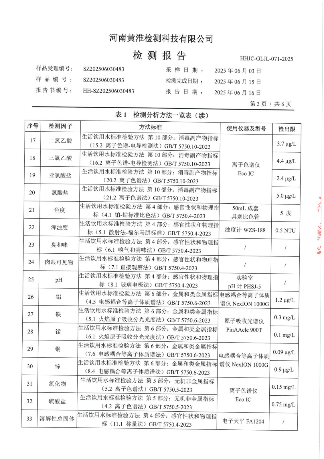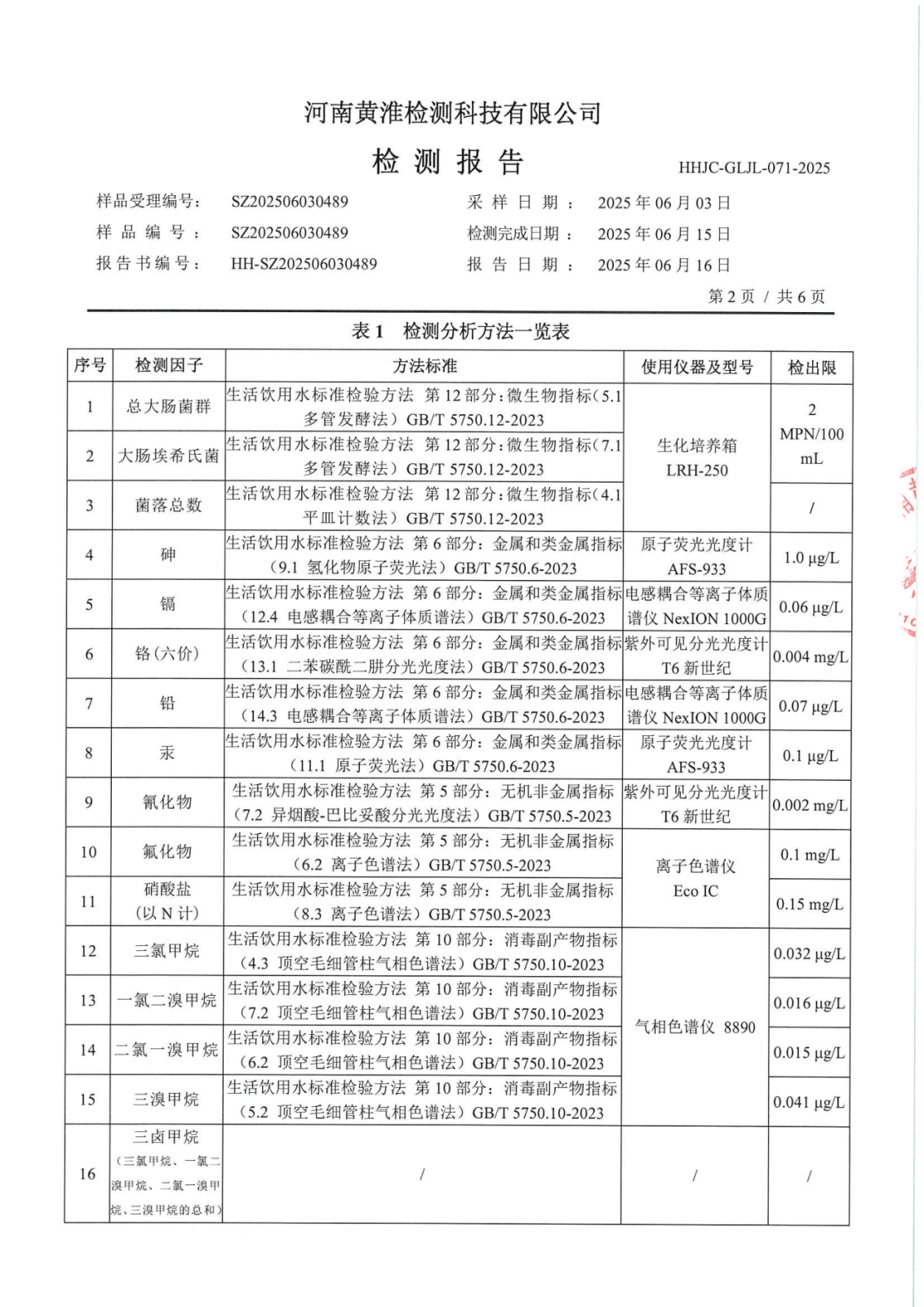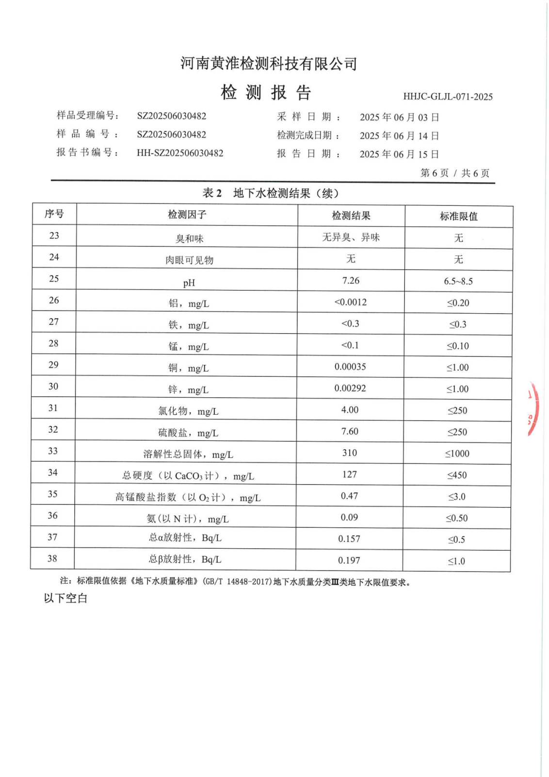 遂平上实水务有限公司2025年一水厂6月份水质检测报告