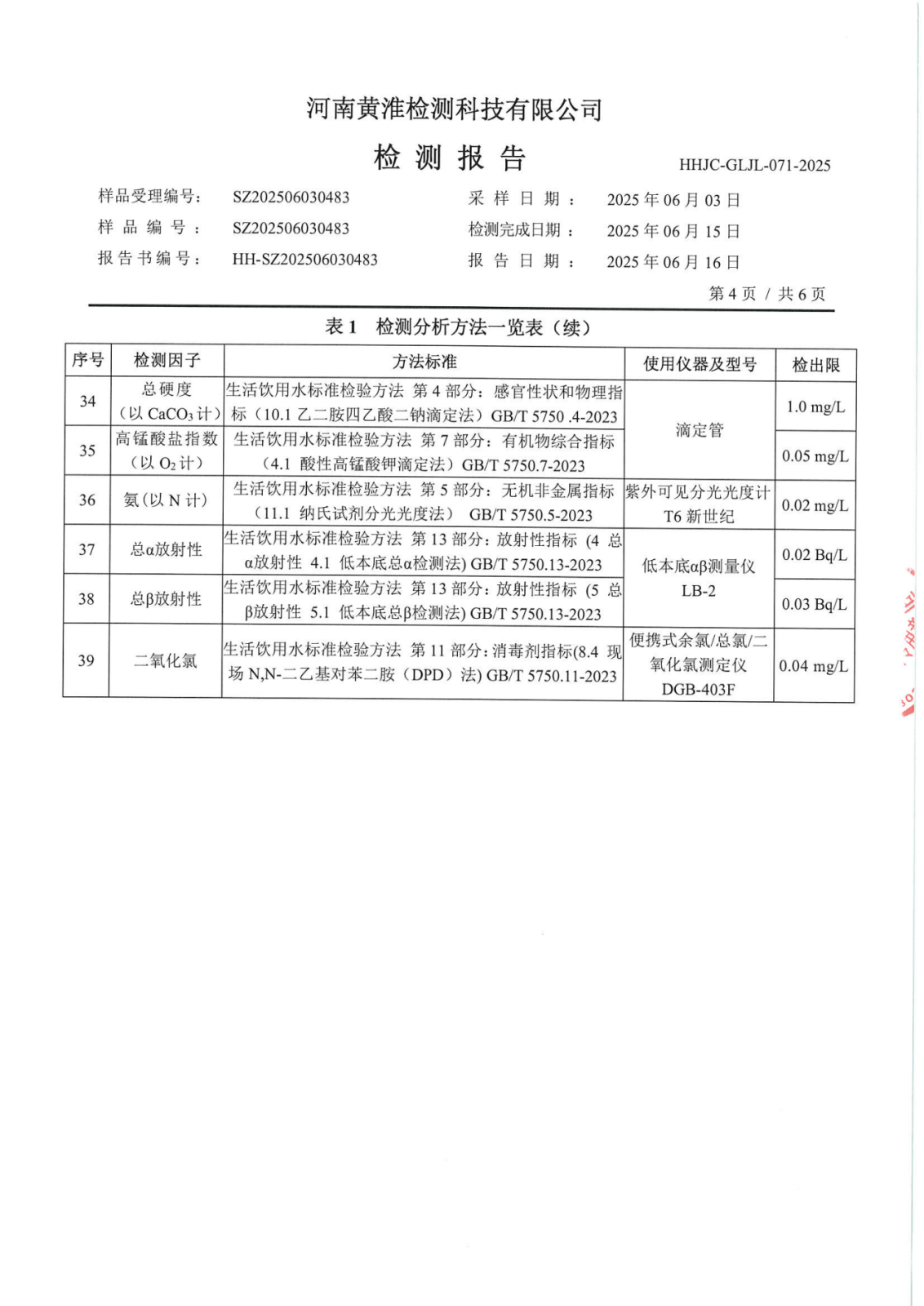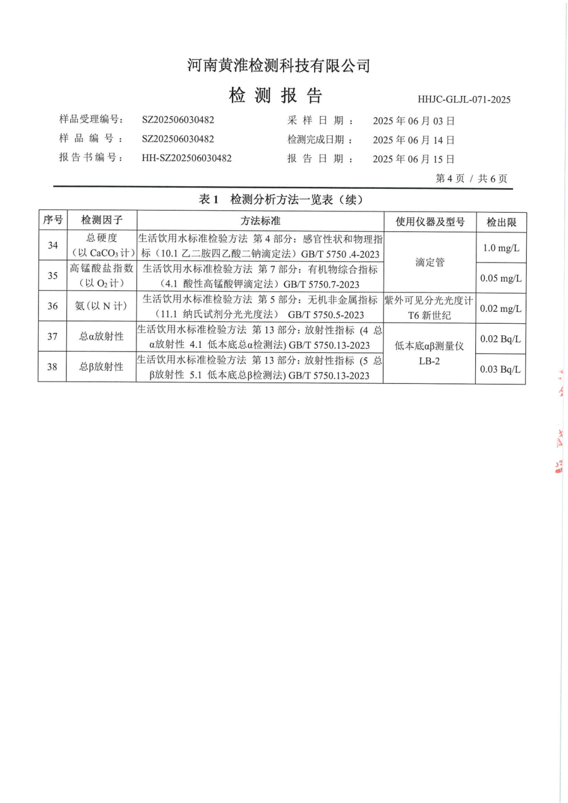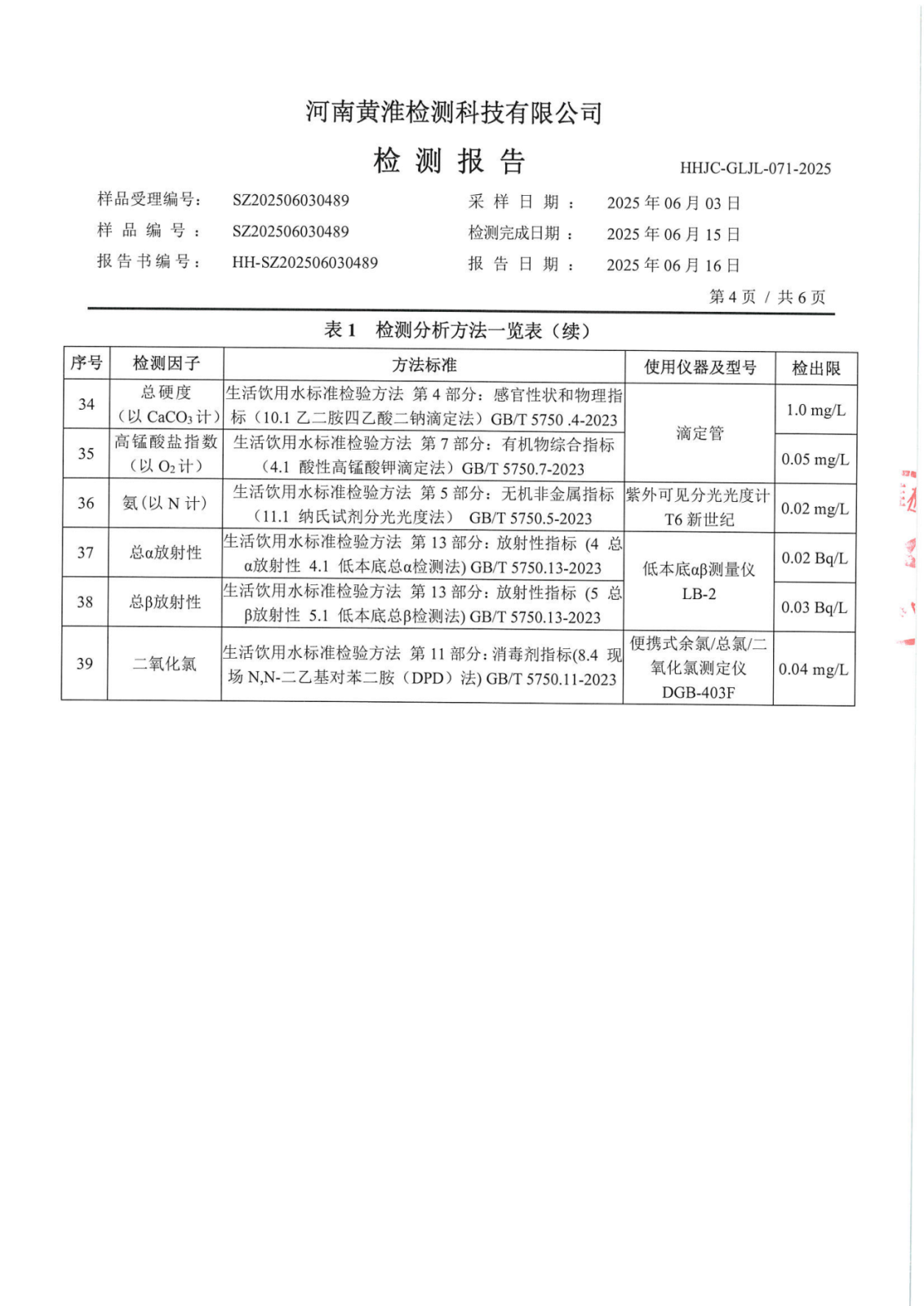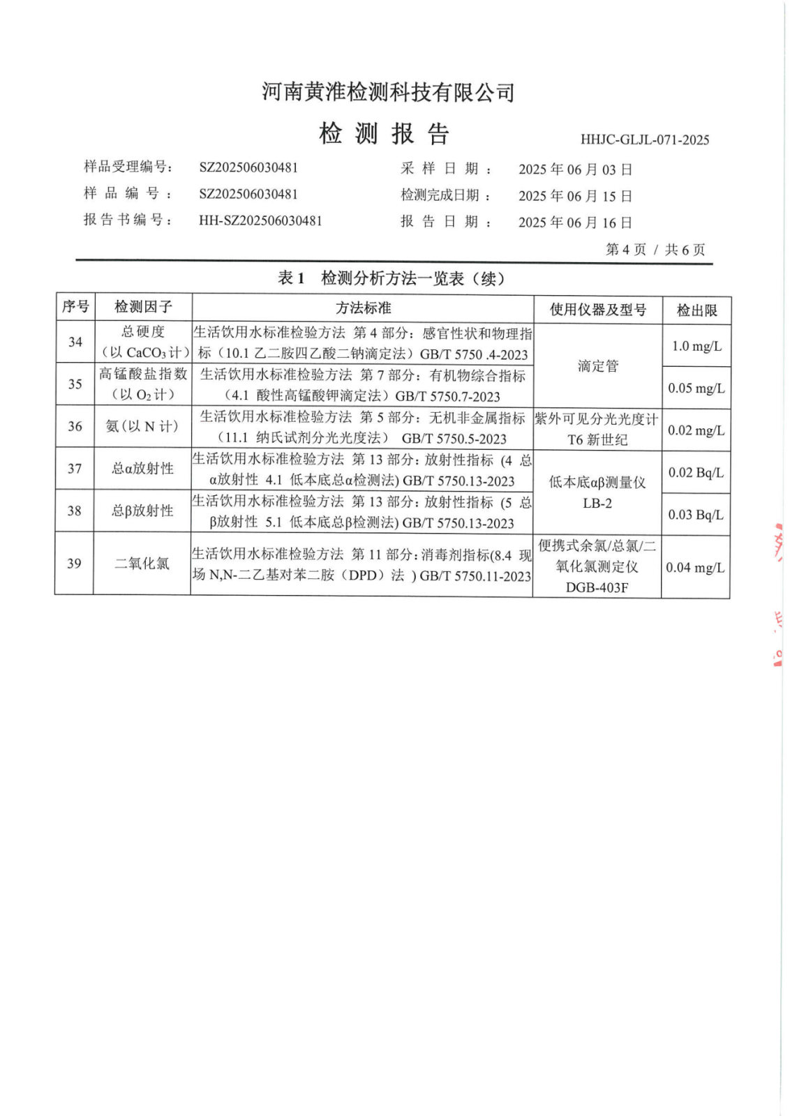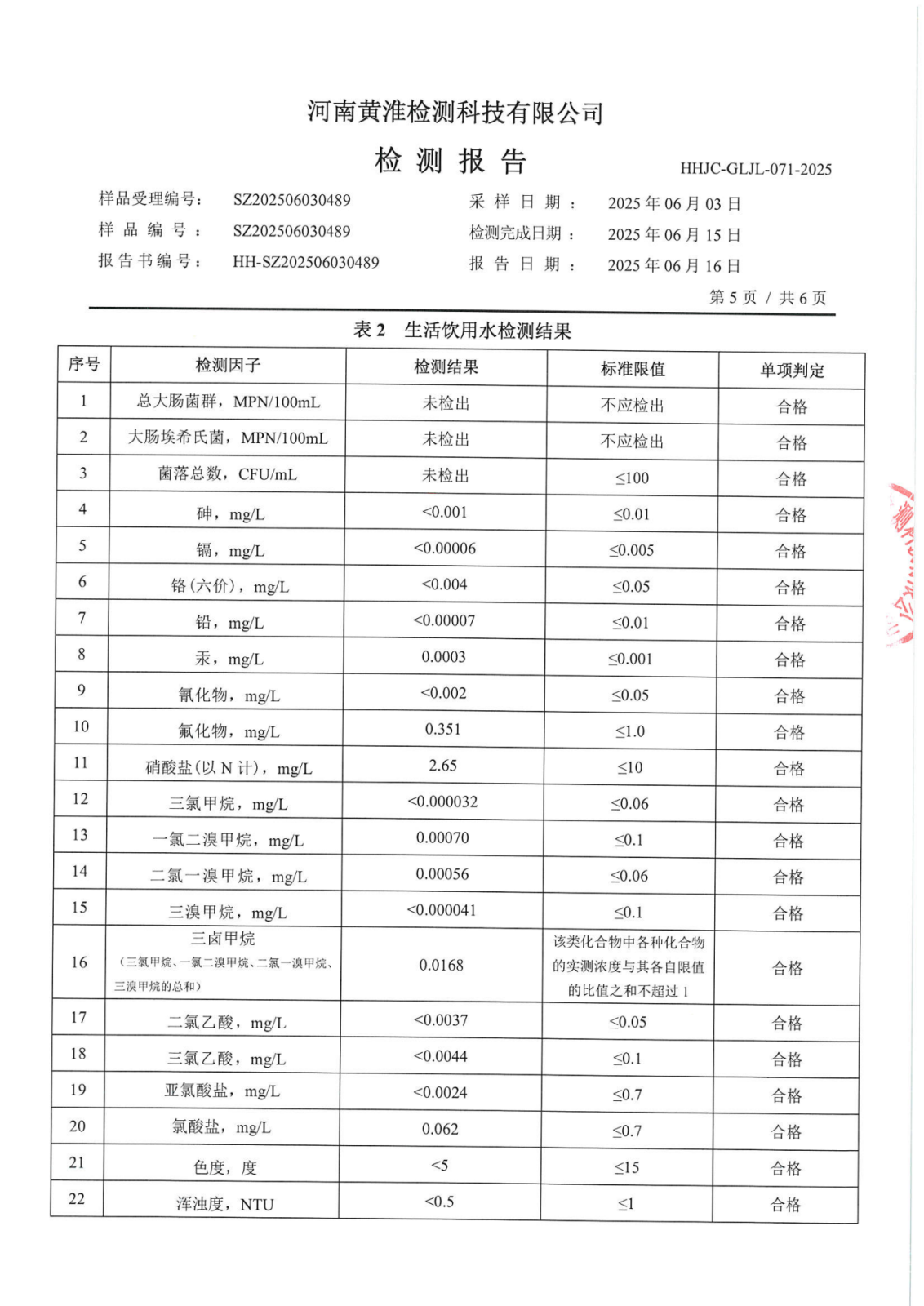 遂平上实水务有限公司2025年一水厂6月份水质检测报告