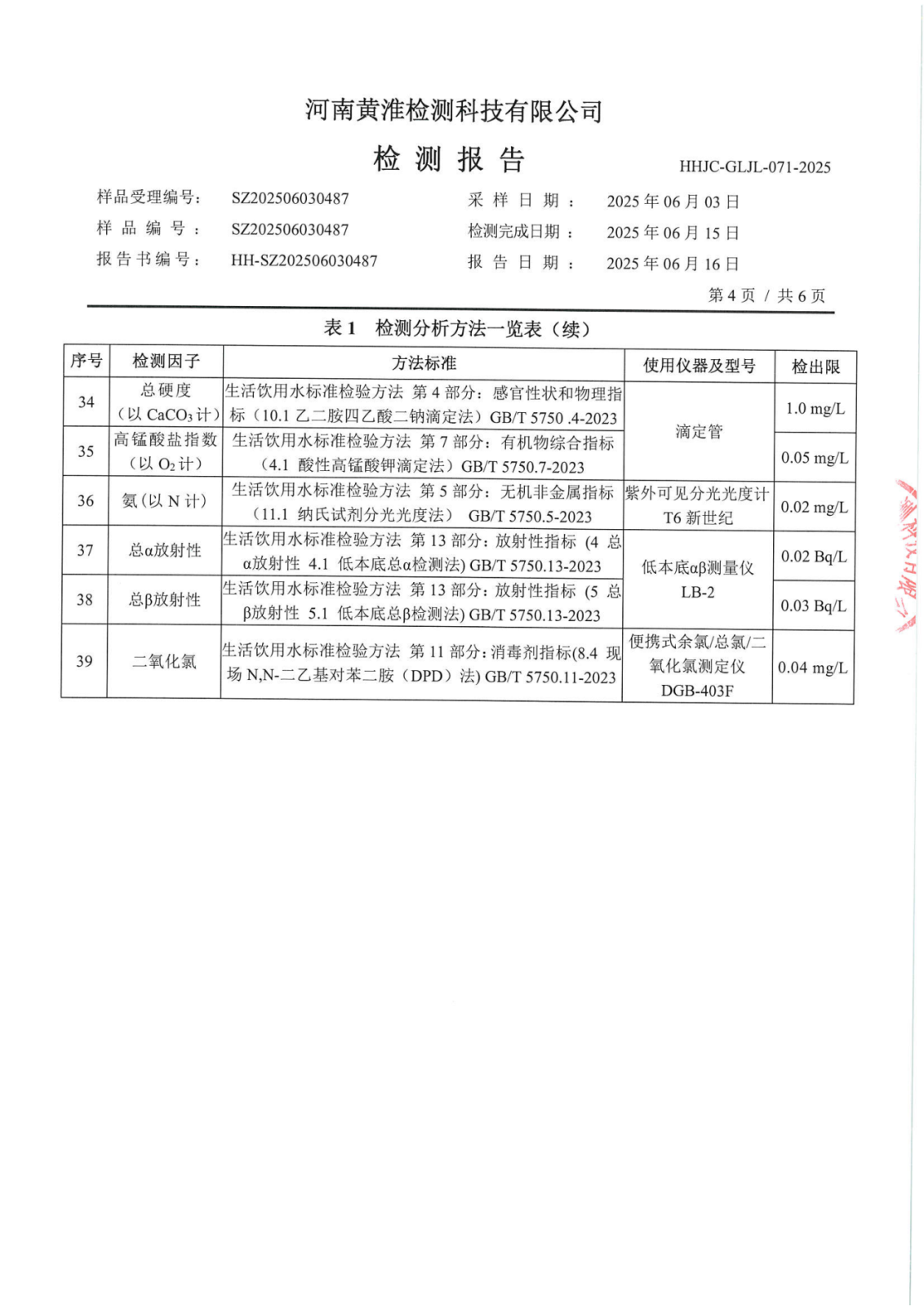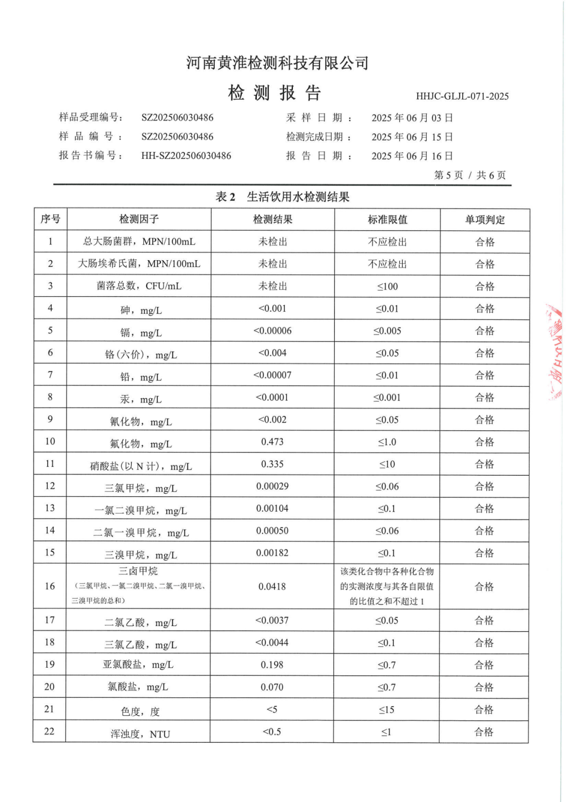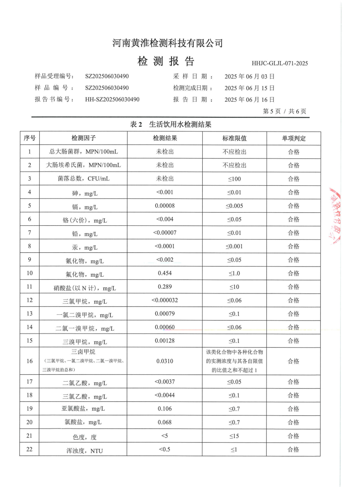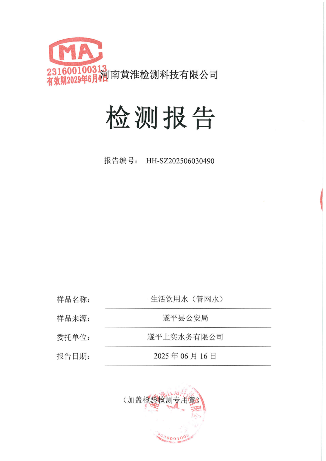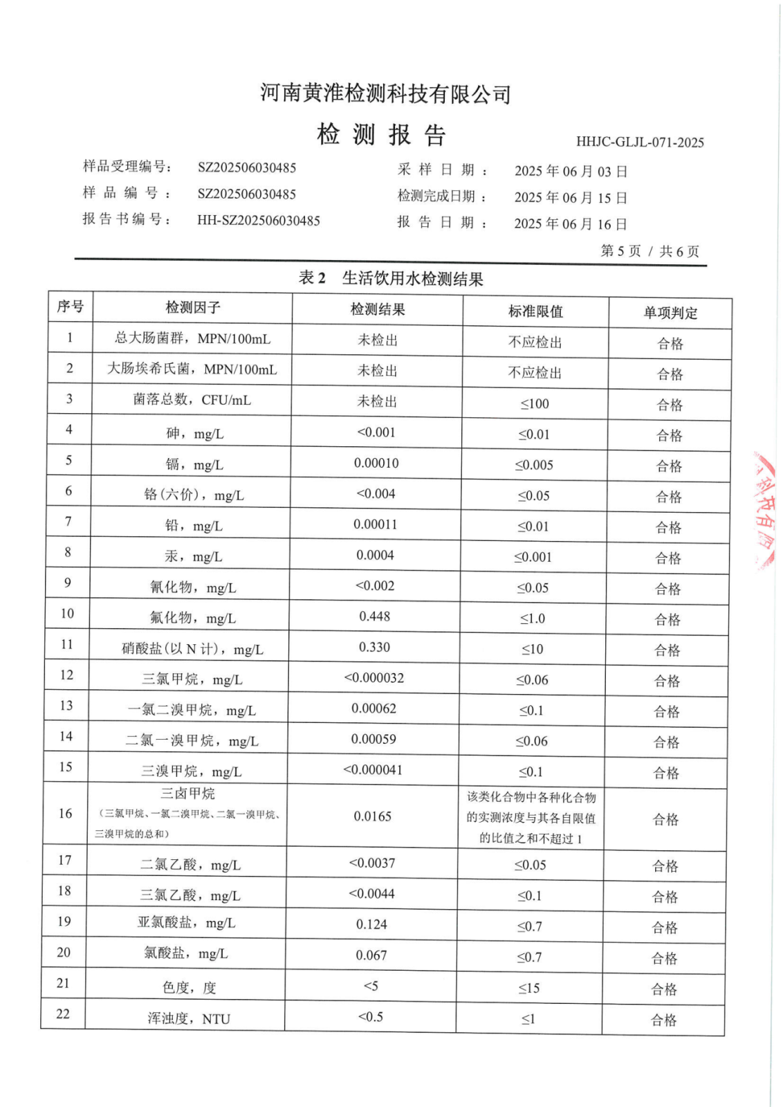 遂平上实水务有限公司2025年二水厂6月份水质检测报告