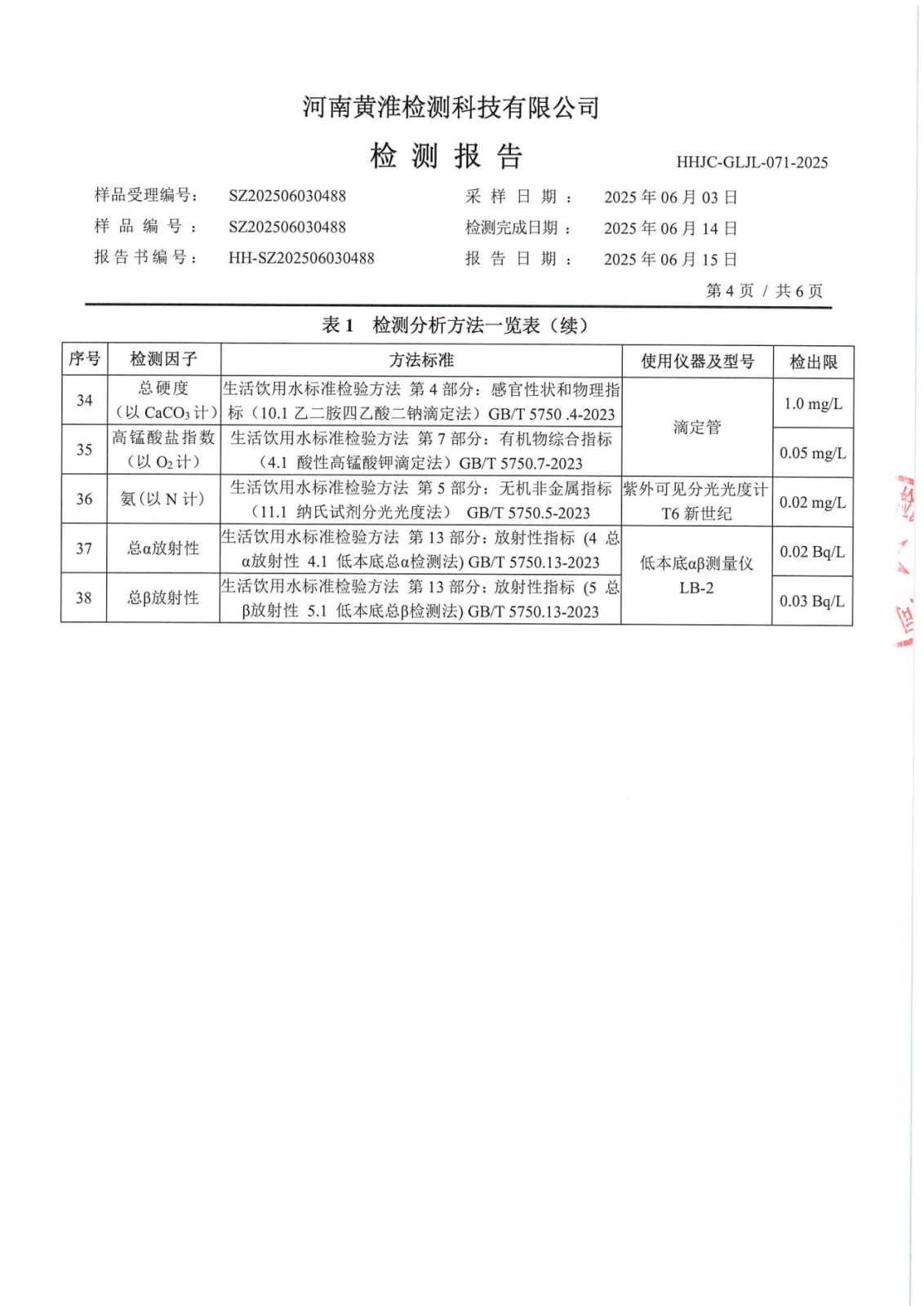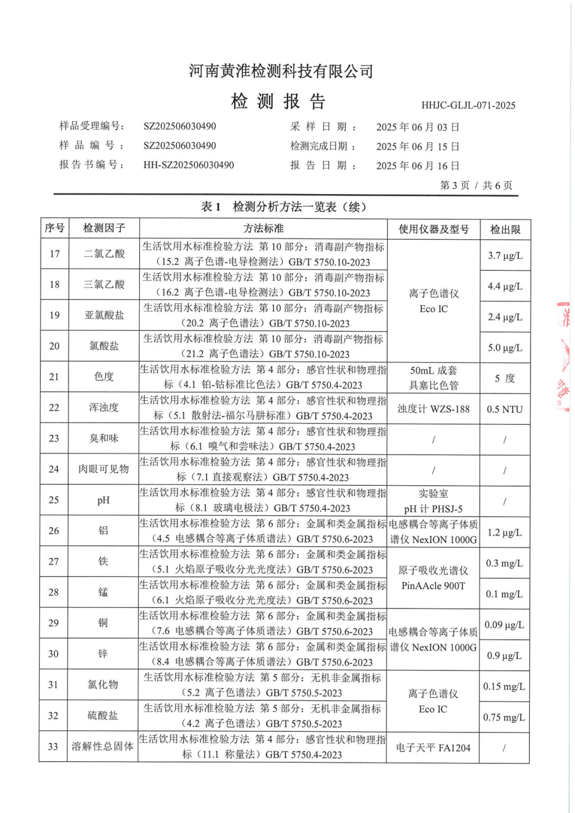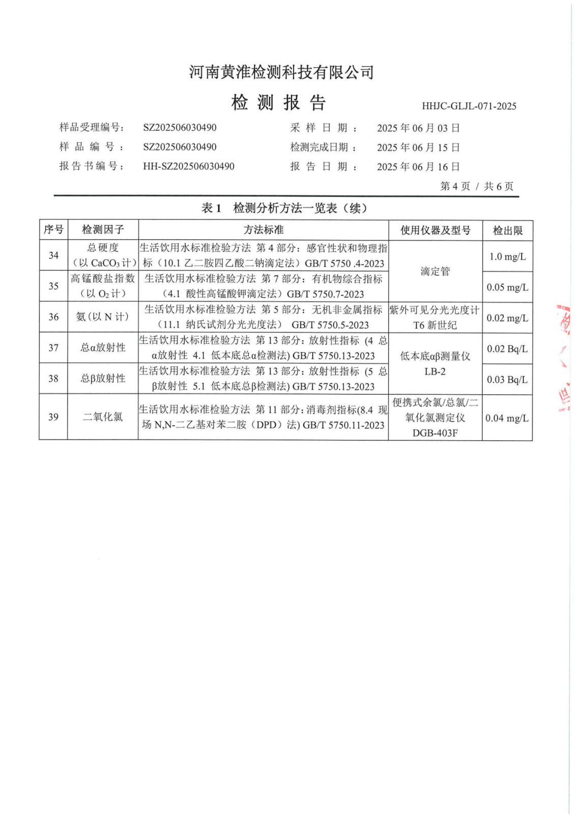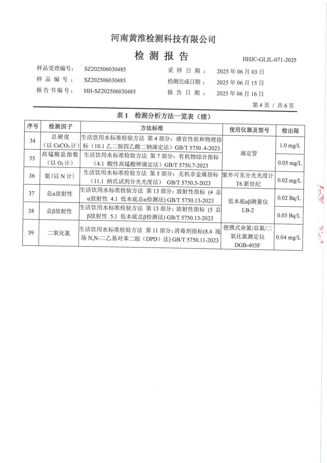 遂平上实水务有限公司2025年二水厂6月份水质检测报告