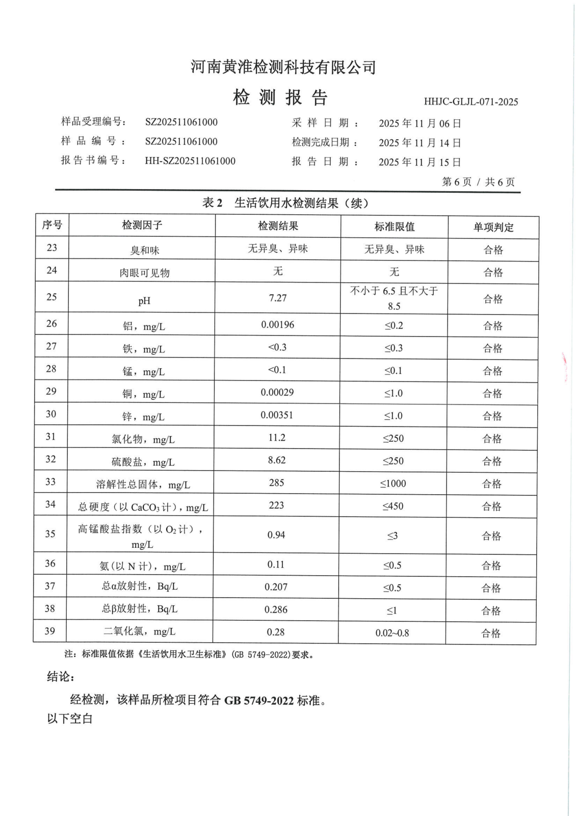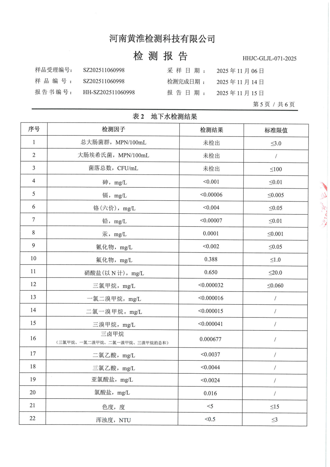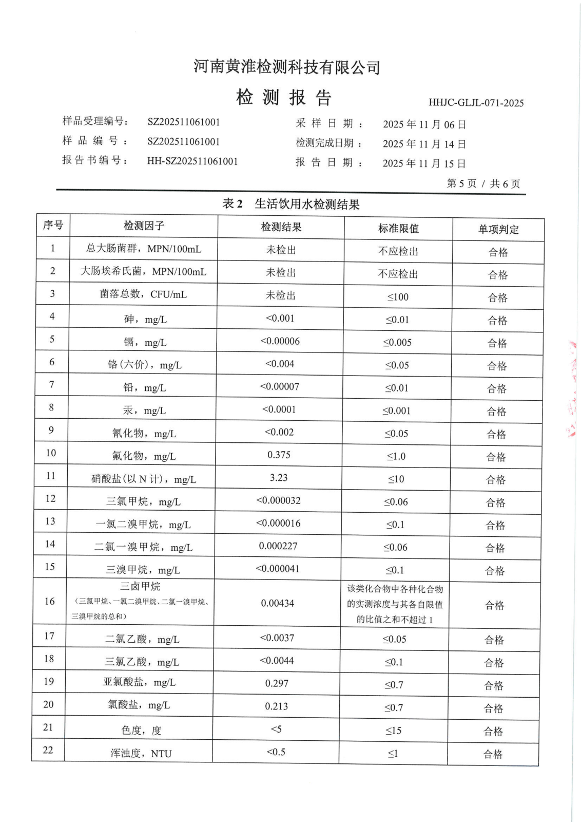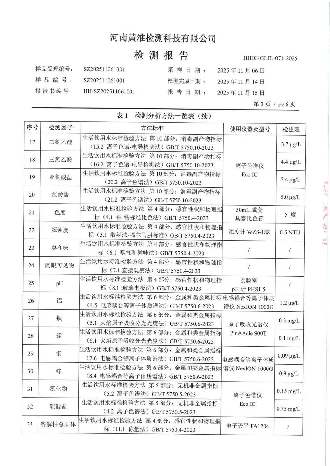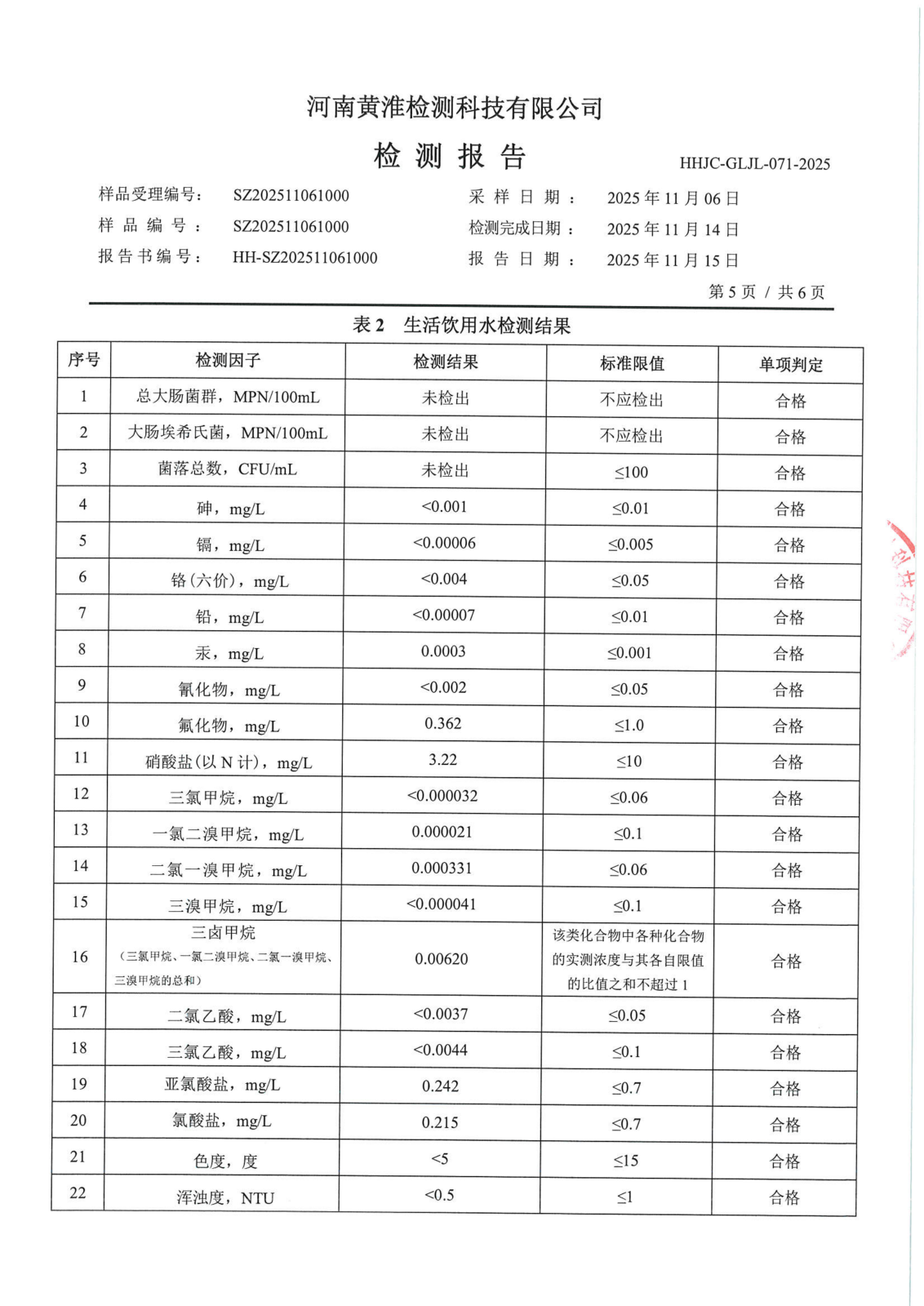 遂平上实水务有限公司2025年一水厂11月份水质检测报告
