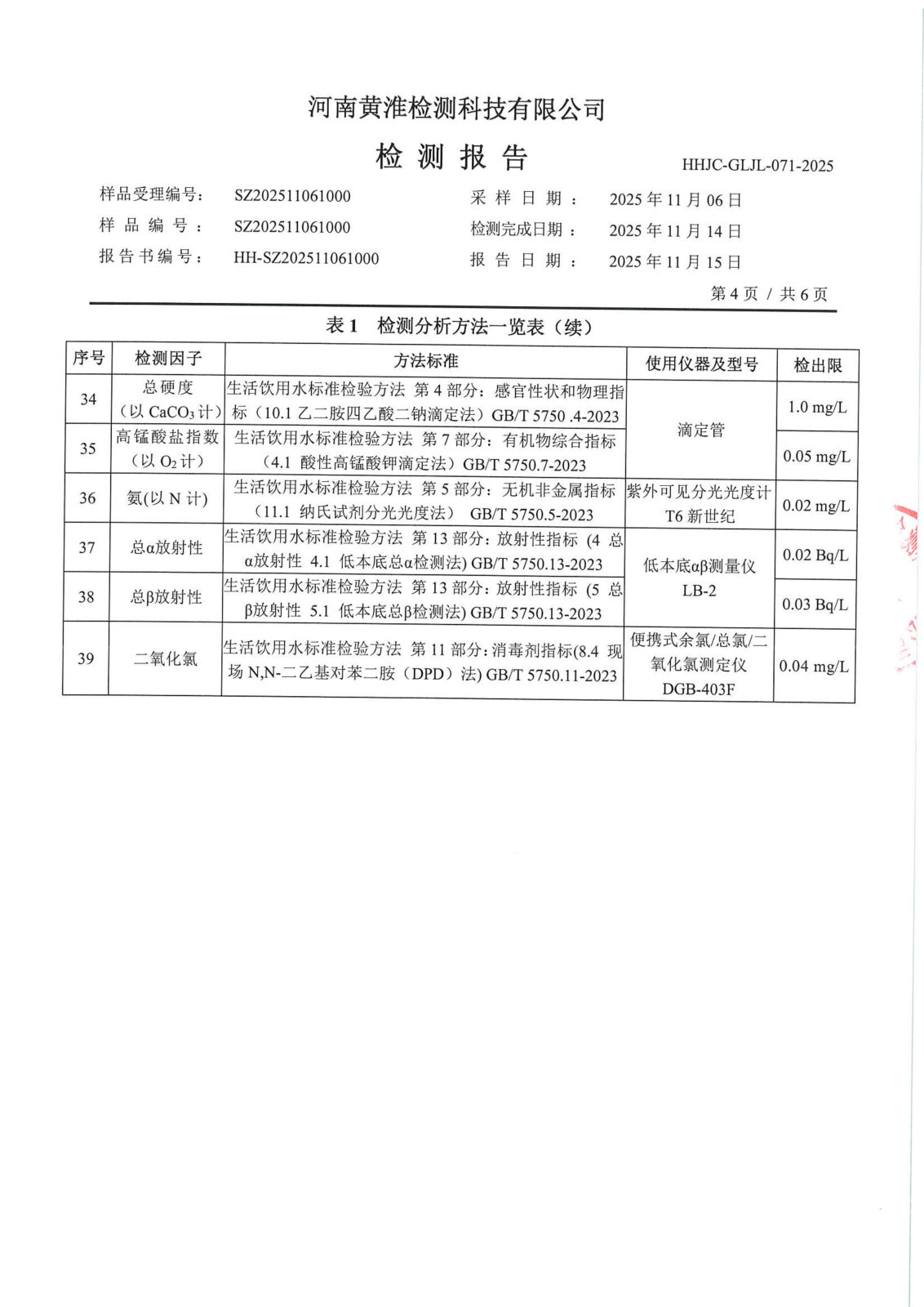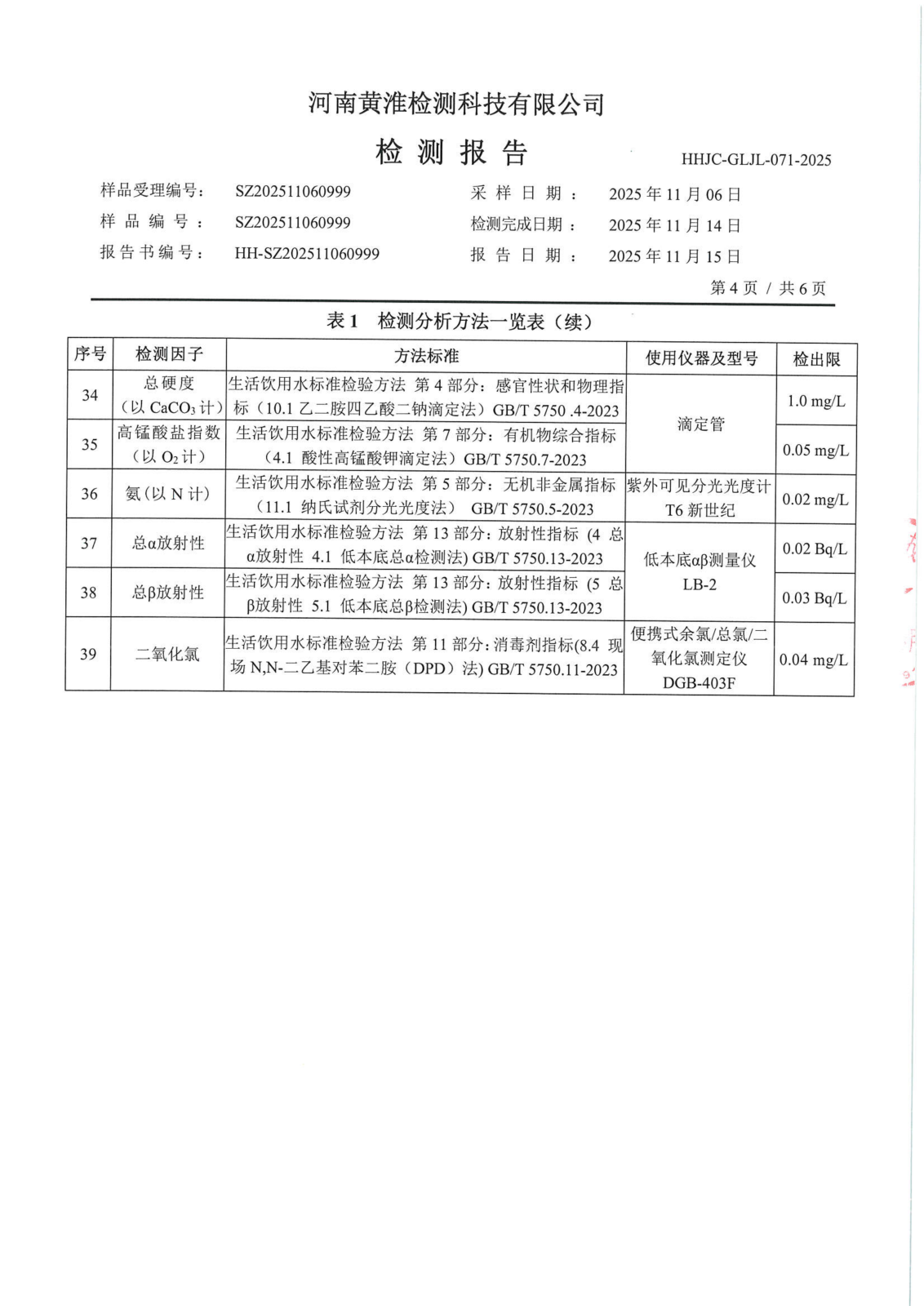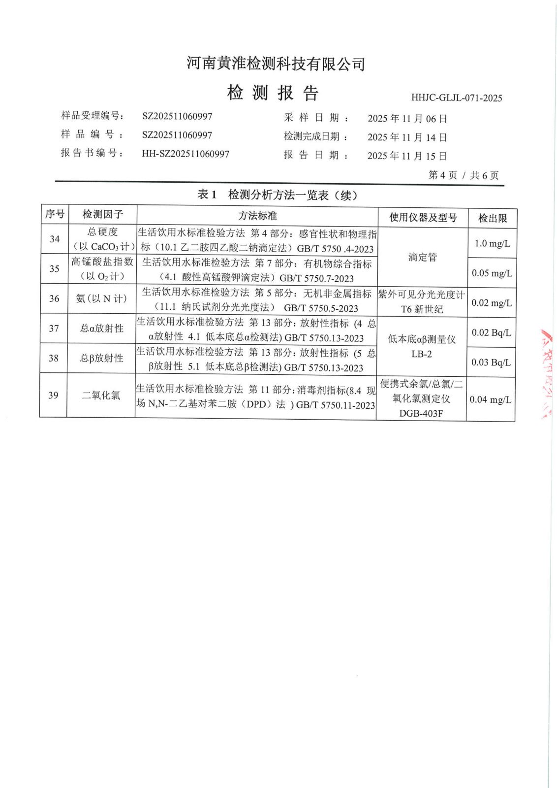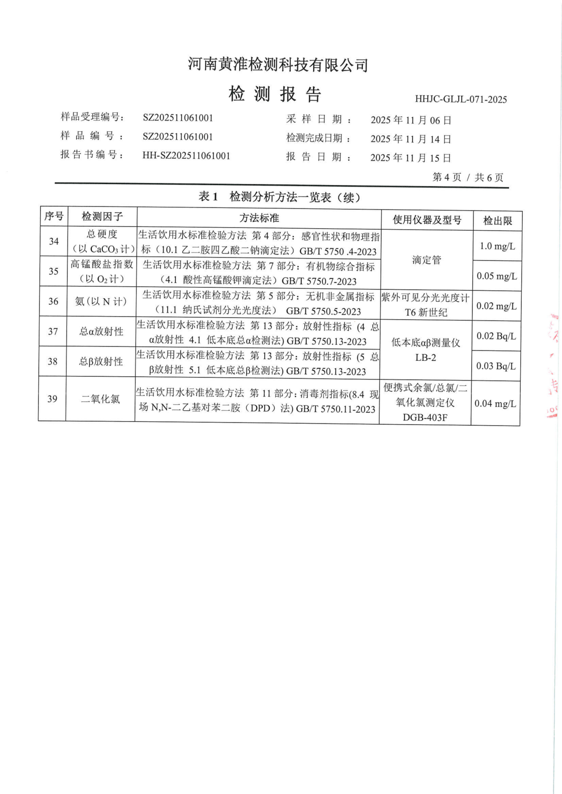 遂平上实水务有限公司2025年一水厂11月份水质检测报告
