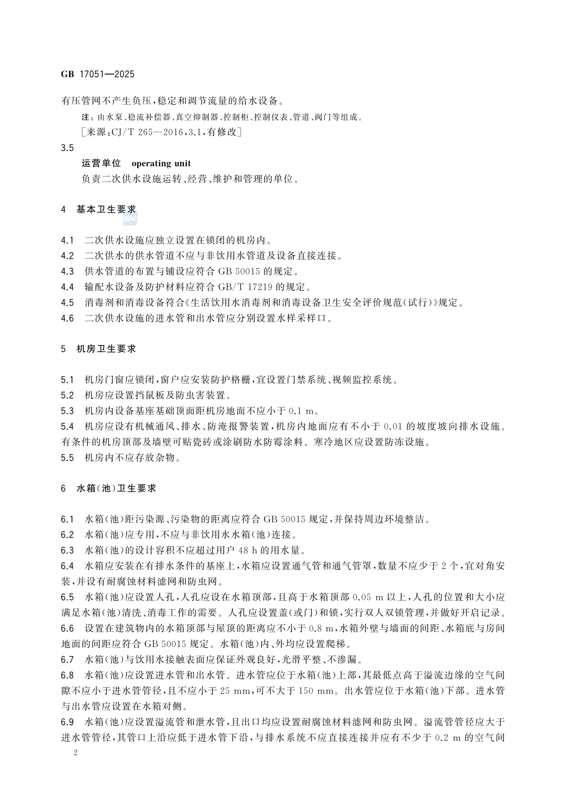 【国家标准】二次供水设施卫生规范(GB 17051—2025)